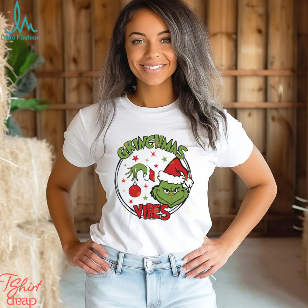 No, I’m very comfortable with saying “Merry Christmas” to people. I’m atheist as well, and I celebrate Christmas. The vast majority of the Grincmas Vibes Chrismas Shirt of Christmas are secular, ranging from the general motive of exchanging gifts and spending time with your loved ones all the way to Santa Claus and Rudolph the Red Nosed Reindeer. Christmas these days is about as secular as paying cash (In God We Trust), going to elementary school (saying the Pledge of Allegiance), or going to court (Ten Commandments in front of court houses): in other words, while it’s still a tiny bit religious and it does make me a bit uncomfortable, they are still for the vast majority secular and I still willingly participate in these activities.