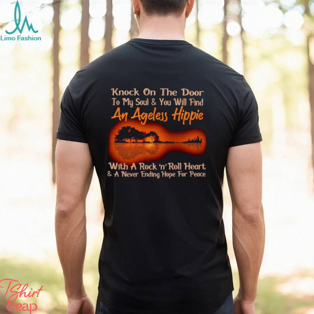 Many of the Guitar knock on the door to my soul and you will find An Ageless Hippie shirt Christmas customs were inherited from older Winter Solstice celebrations—including greenery indoors, feasting and gift-giving. It seems quite likely that the celebration of the birth of Jesus was scheduled at that time in order to piggy-back on existing holiday observances. Halloween is very directly descended from the old Celtic feast of Samhain, when the dead return to visit the living. Modern Pagans observe this and Beltane (May Day) as their major holidays, the Feast of the Dead and the Feast of the Living on opposite sides of the Wheel of the Year. Easter’s Pagan connections are suggested by its English name, Eostara being a Pagan Germanic Goddess associated with the Spring Equinox. The bunnies and eggs probably go back to Pagan times as well.