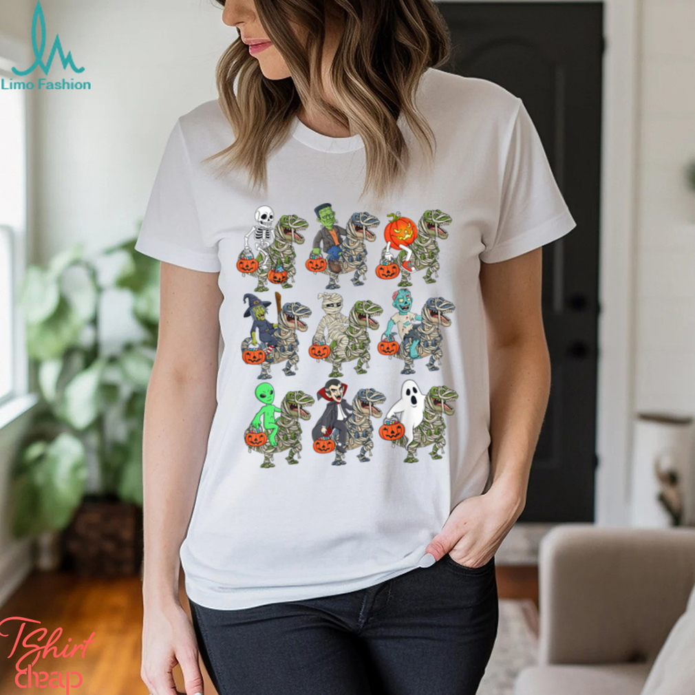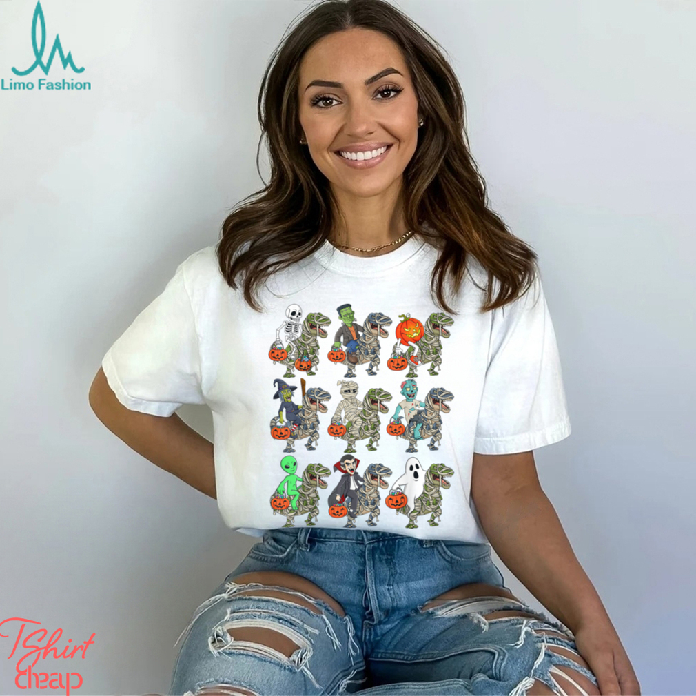 ()Halloween Skeleton Zombie Riding Mummy T Rex Vampire Boys T Shirt hoodie, tank top, sweater and long sleeve t-shirt