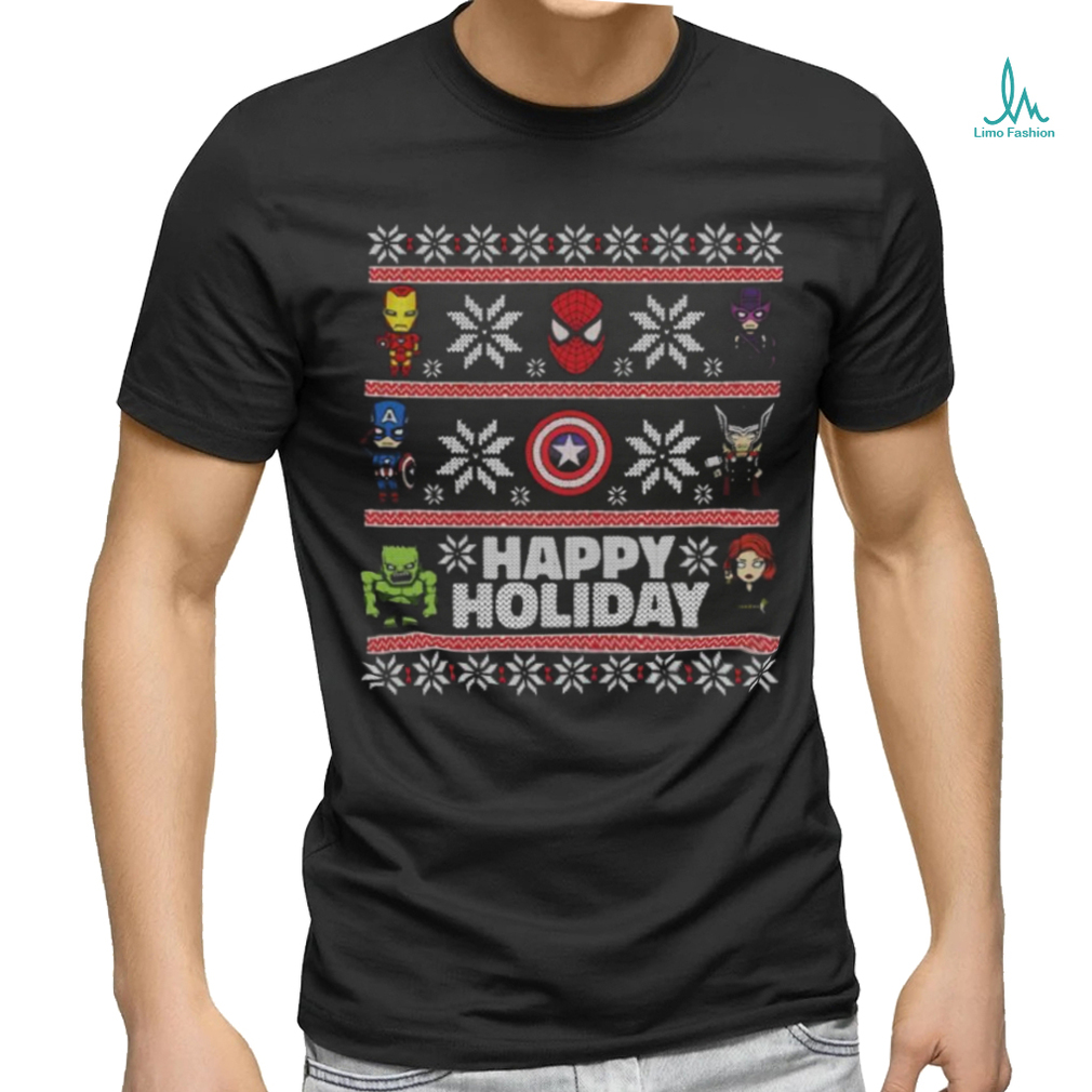 Happy Holiday Avengers Superheroes Christmas Ugly shirt. Categories of this T-shirt is teejeep, Happy Holiday Avengers Superheroes Christmas Ugly shirt from Dadyshirt ✓ Unique designs ✓ Large assortment ✓ Comfortable ✓ High-quality ✓ Easy to care for ✓ Available in a range of colours and styles for men, women ✓ Shop now ✓