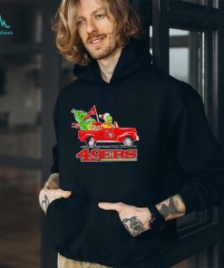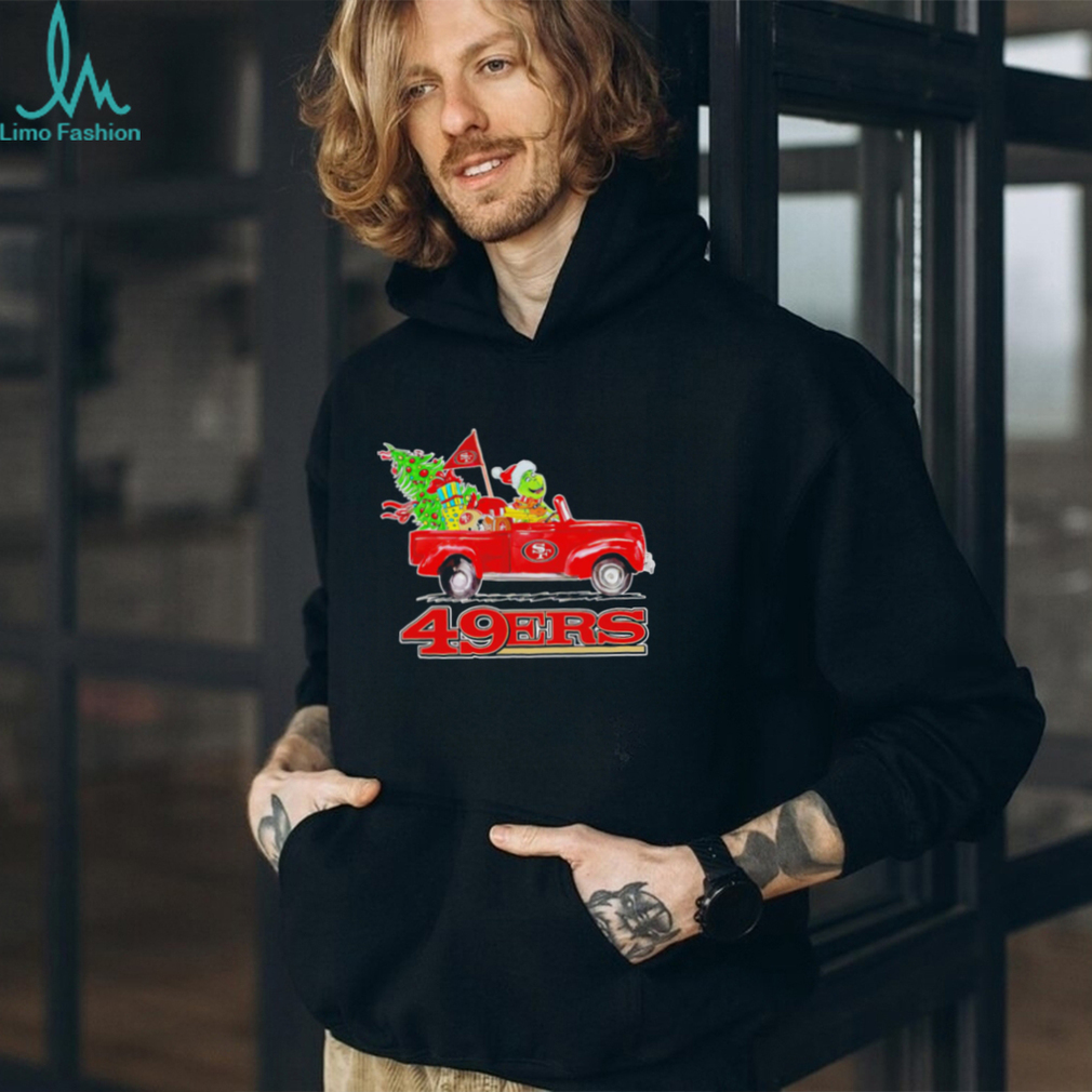 Happy Merry Christmas The Grinch drive a car San Francisco 49ers football logo flag gift shirt, Hoodie, Sweater, Vneck, Unisex and T-shirt