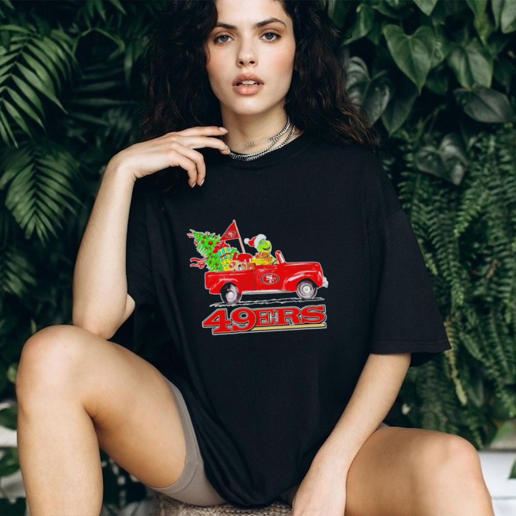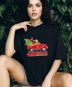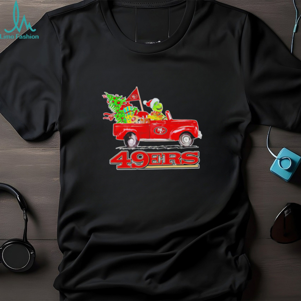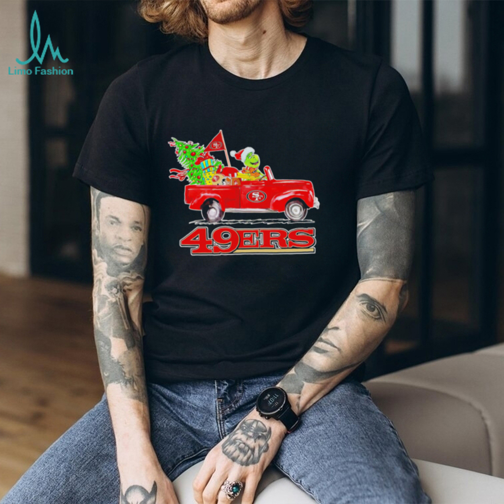 Best Happy Merry Christmas The Grinch drive a car San Francisco 49ers football logo flag gift shirt