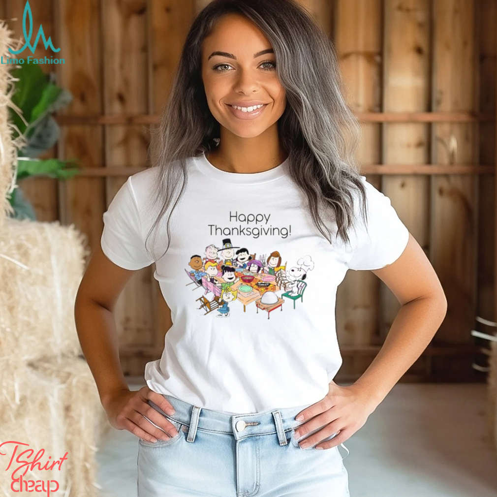If you’re flying out of China before Chinese New Year (“spring festival”) and flying back to China after Chinese New Year, you can probably land yourself a Happy Thanksgiving 2023 Snoopy Family Party shirt cheap ticket. The other way around, no (a lot of overseas families travel to China during this time while the vast majority of Chinese nationals travel only domestically during this time). This is roughly similar to the reason why it’s not too difficult to find cheap international journeys from the USA around Thanksgiving, as long as you don’t have domestic segments in your itinerary. Christmas time is likely to be expensive in any direction anywhere unless you fly on the day of Christmas or Christmas Eve, or after western New Year. That said, book your tickets early — it’s always hard to predict these kinds of things and you never know what you’ll actually find out there in terms of tickets; every now and then you might stumble across something cheap especially if you really pay close attention.