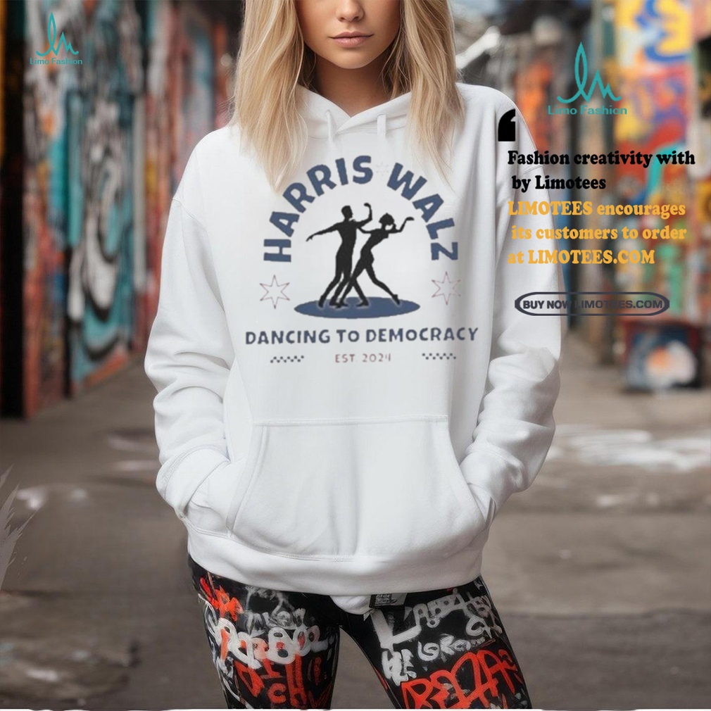 Now and again, playing some Harris Walz 2024 Dancing To Democracy Shirt sound assistance decrease yelping. There are numerous CDs for hounds who need unwinding. A pheromone diffuser might be useful on the off chance that you as of late protected a canine and it is making some hard memories adjusting to new commotions and scents. Mutts will in general bark less whenever permitted to remain in the home versus kept in the yard throughout the day. Canines are pack creatures and flourish with human friendship. It is imperative to place some exertion in deciding why your canine is yapping so to help diminish the woofing in any case. Heading off to the base of the issue is vital.