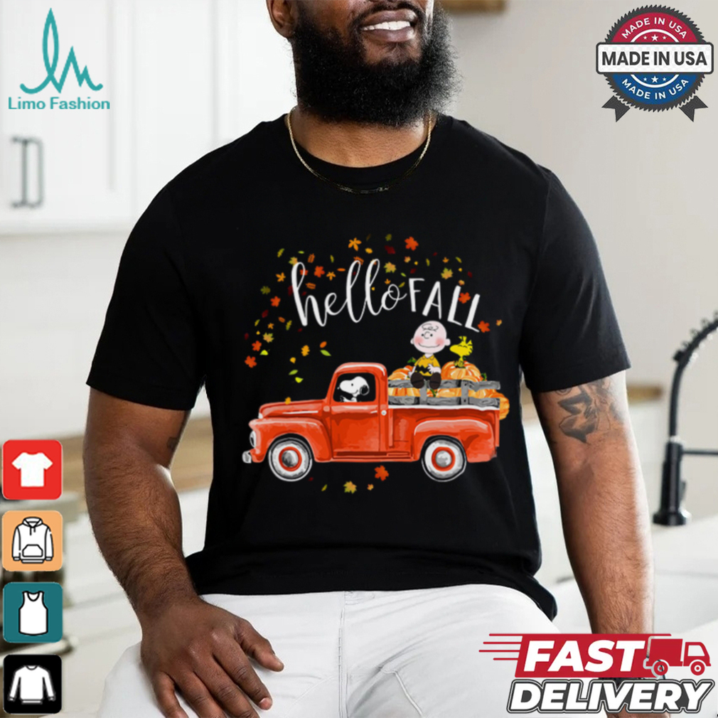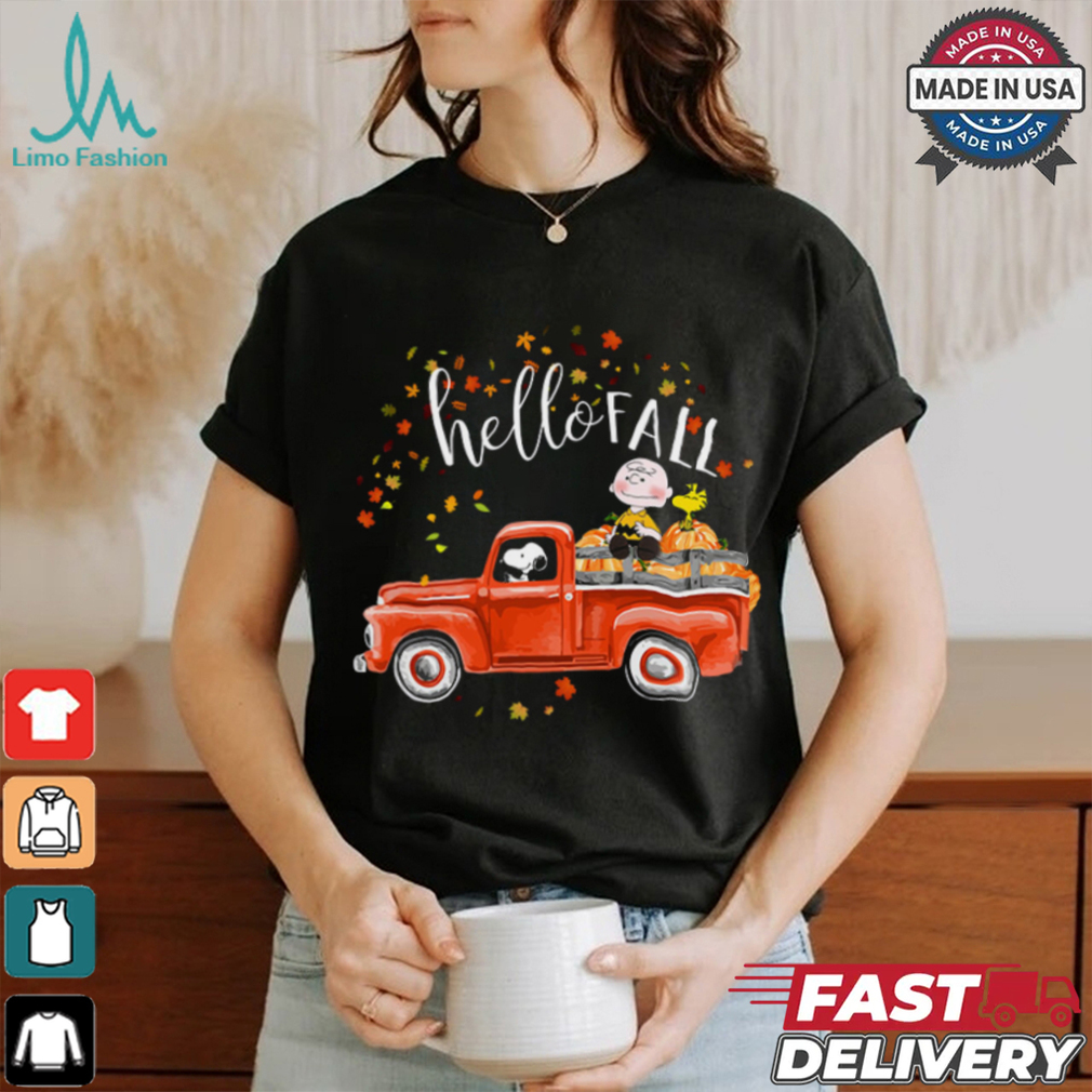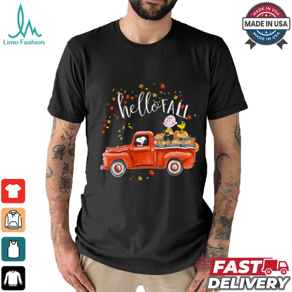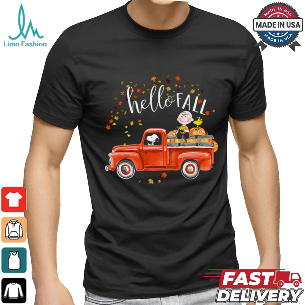 ()Hello Fall Funny Snoopy Driving Truck Charlie Brown Hardvest T Shirt, Hoodie, Sweater, Vneck, Unisex and T-shirt