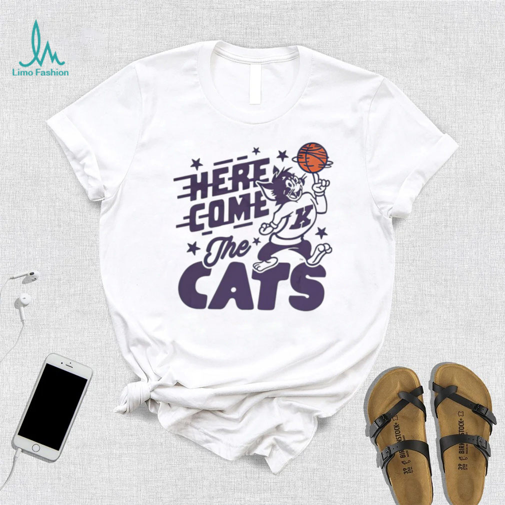 Keep tabs on all of Here come the cats Kansas State Wildcats basketball shirt orders. It’s important to be aware of all the possible delays your orders are facing so that you can keep your customers updated. If factors change and delays increase on a given order be certain to quickly share this information with your customer. Consider sending update emails to customers that have active orders during the holiday. You know that they’re thinking about it and if they don’t hear from you they’re likely to contact you. So be proactive and send out frequent alerts. They don’t have to be long. Just a quick blurb stating the current status of the order and how much longer delivery is likely to take. More than anything customers want to know that you understand why they might be upset and that you’re doing the best you can to keep them alerted to the status of their order. This small gesture will go a long way.