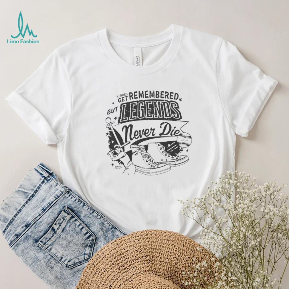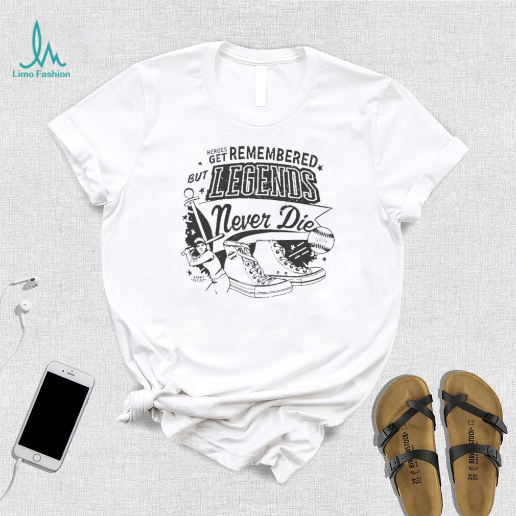 At that point I had a steady girl-friend, but also a Heroes get remembered legends never die collage shirt good friend Robin. I was suppose to meet my girl-friend on Christmas Eve, but around 7:00 PM my friend Robin calls me up and tells me her mom has been bummed about about Christmas and there are no decorations at their home. She asked me, “Will you go get a Christmas tree with me?” That put me in a real dilemma with my girl-friend, but sometimes you have to do the right thing…so I called my girl-friend and told her what I had to do, she was cool. My friend Robin had lost her father when she was very young, and her mother never remarried her entire life. I sort of knew why because one day while over Robin’s house, she had a box of letters that her dad had written to her mom while he was a soldier, and we read them together…very old letters, but expressed who he was.