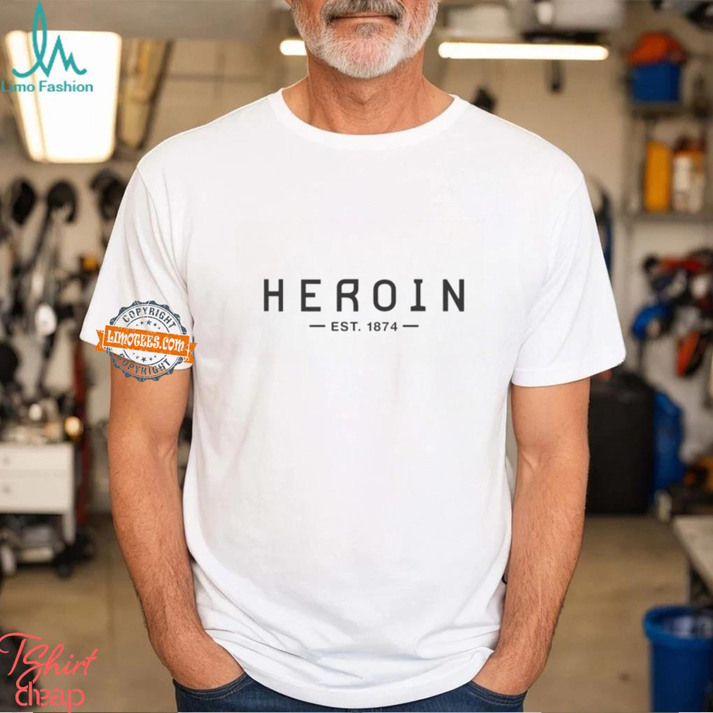 ()Heroin Est 1874 Shirt. Categories of this T-shirt is limotees, Heroin Est 1874 Shirt from Dadyshirt ✓ Unique designs ✓ Large assortment ✓ Comfortable ✓ High-quality ✓ Easy to care for ✓ Available in a range of colours and styles for men, women ✓ Shop now ✓