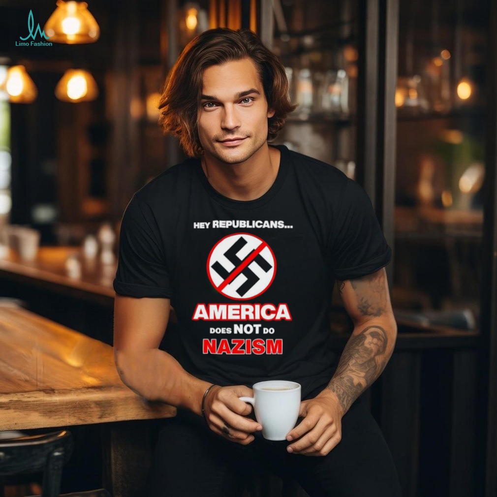 Geography. Pick the local team. If you are in say Miami, congratulations you can be a Dolphins fan and if you want to support teams across several levels, then the Dolphins for the NFL, Miami Hurricane among the power college programs and Florida International Panthers in the so-called Group of 5. If you are in an area not near an NFL team pick a Hey republicans America does not do Nazism shirt college and could even find enjoyment following a small regional team that plays in Division II or III or Division I FCS. Aesthetic reasons. You like the dark blue and orange combo of the Denver Broncos then that can be your team (also opens up the Boise State Broncos in college football). I’m a Denver Broncos fan and Kansas City is a Hey republicans America does not do Nazism shirt rival but I have to admit I like their home uniform. Like red and black? That gives you the Atlanta Falcons in the NFL, Texas Tech and Arkansas State and Cincinnati just off the top of my head. I don’t like the University of Texas but I happen to think their road uniform is one of the best in college football.