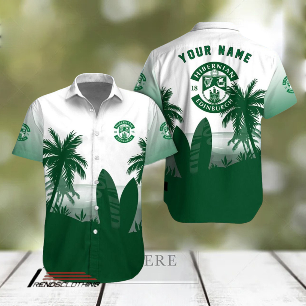 Hibernian FC Palm Tree Surfboard Personalized Name Button Shirt,