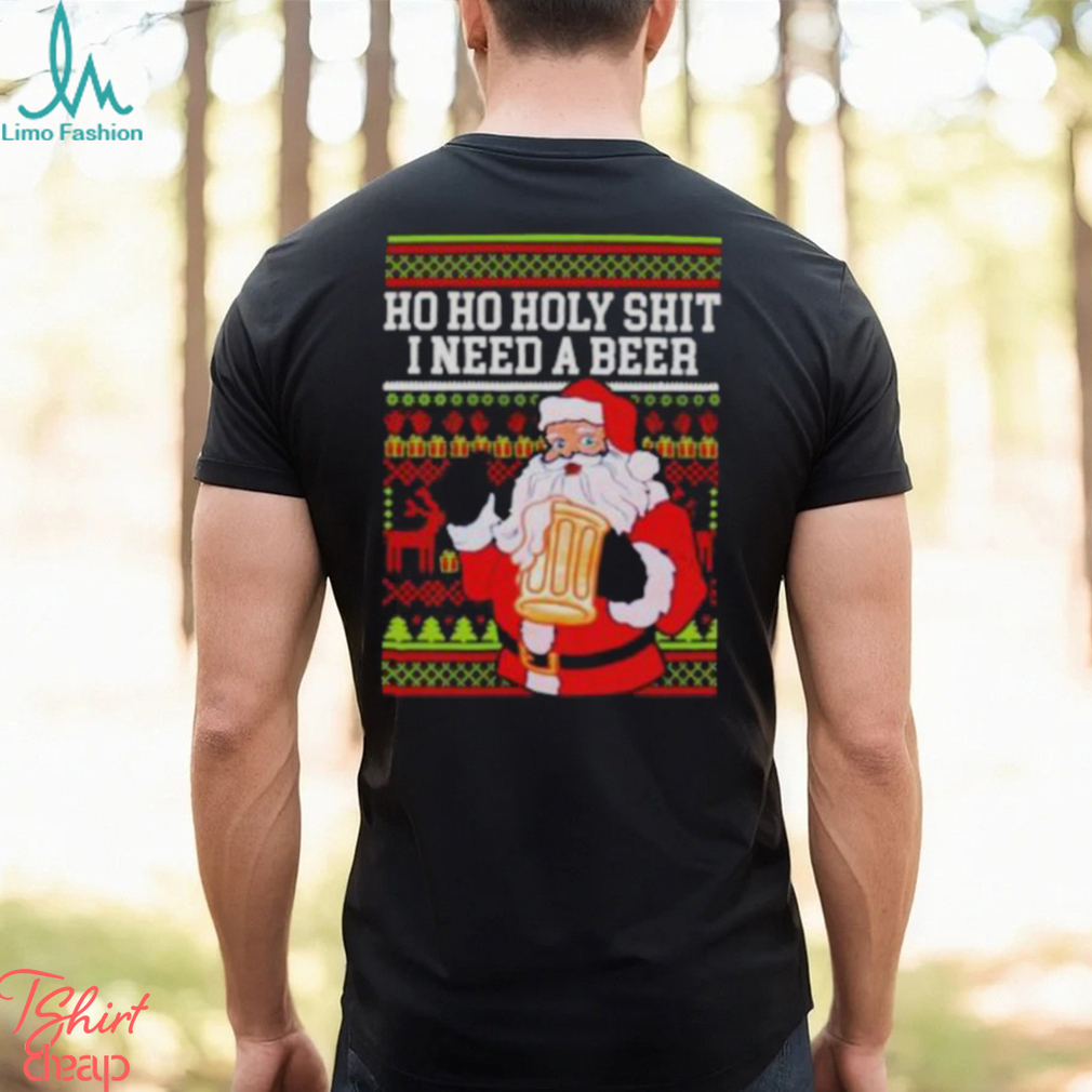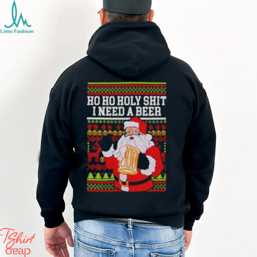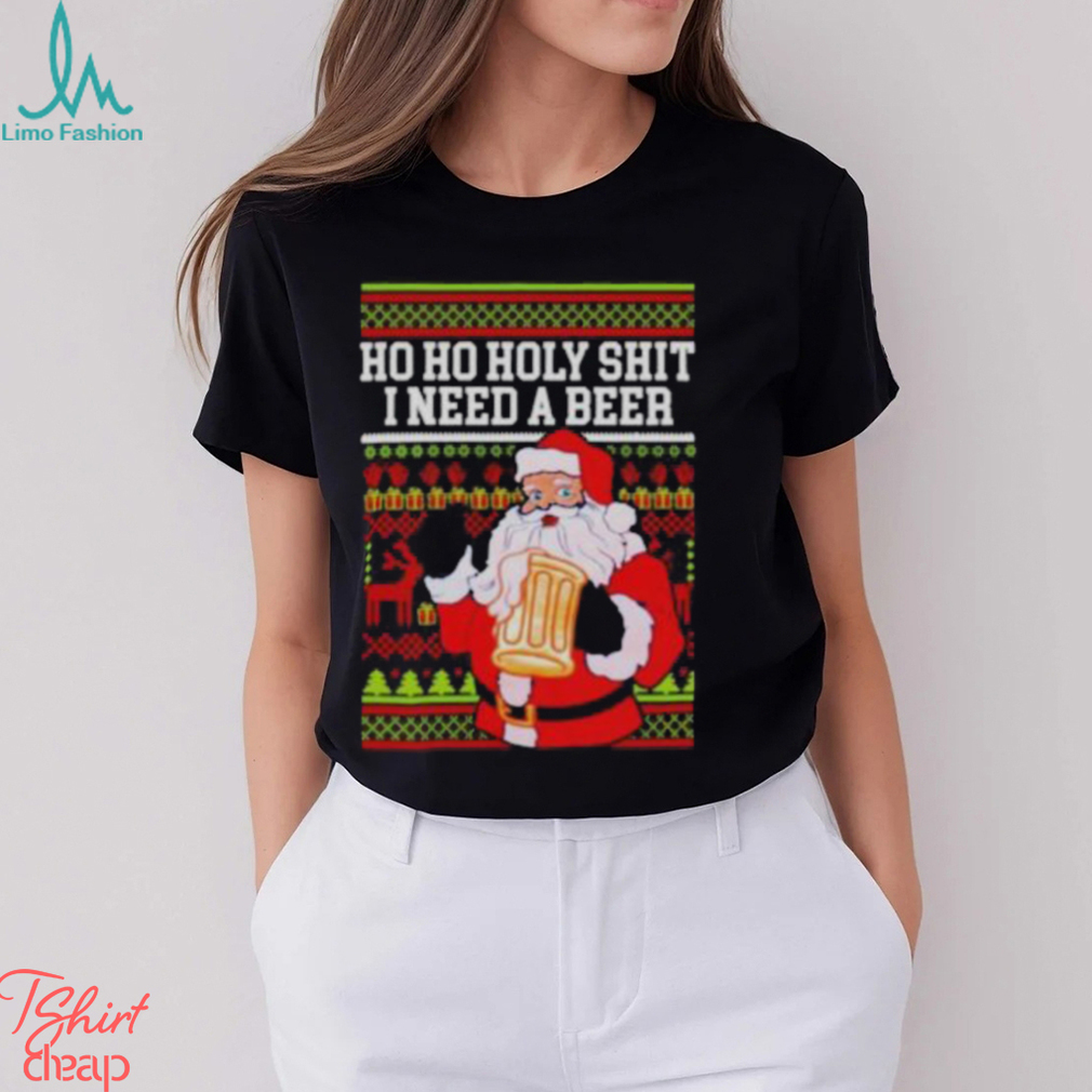 ()Ho Ho holy shit I need a beer Santa ugly Christmas shirt hoodie, tank top, sweater and long sleeve t-shirt