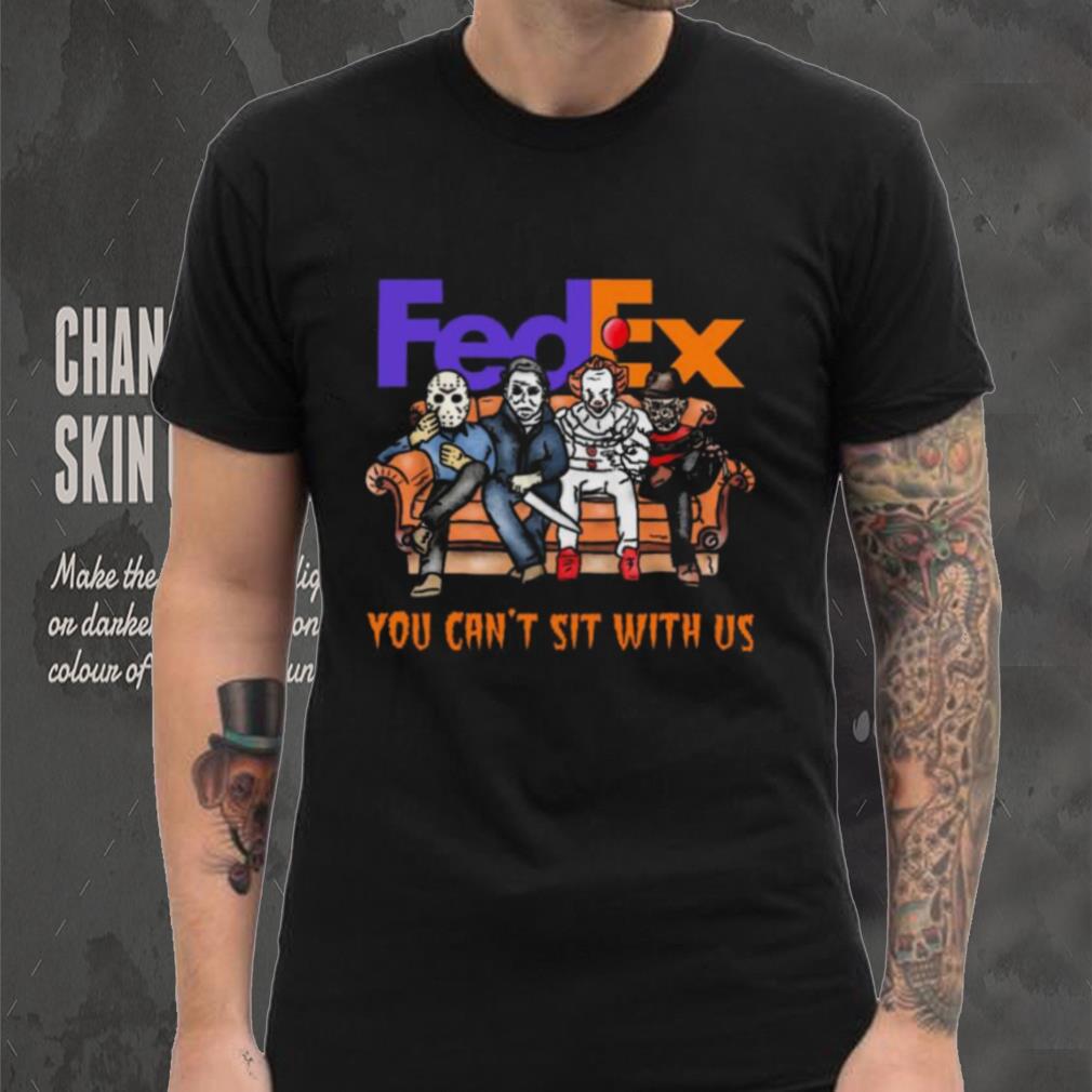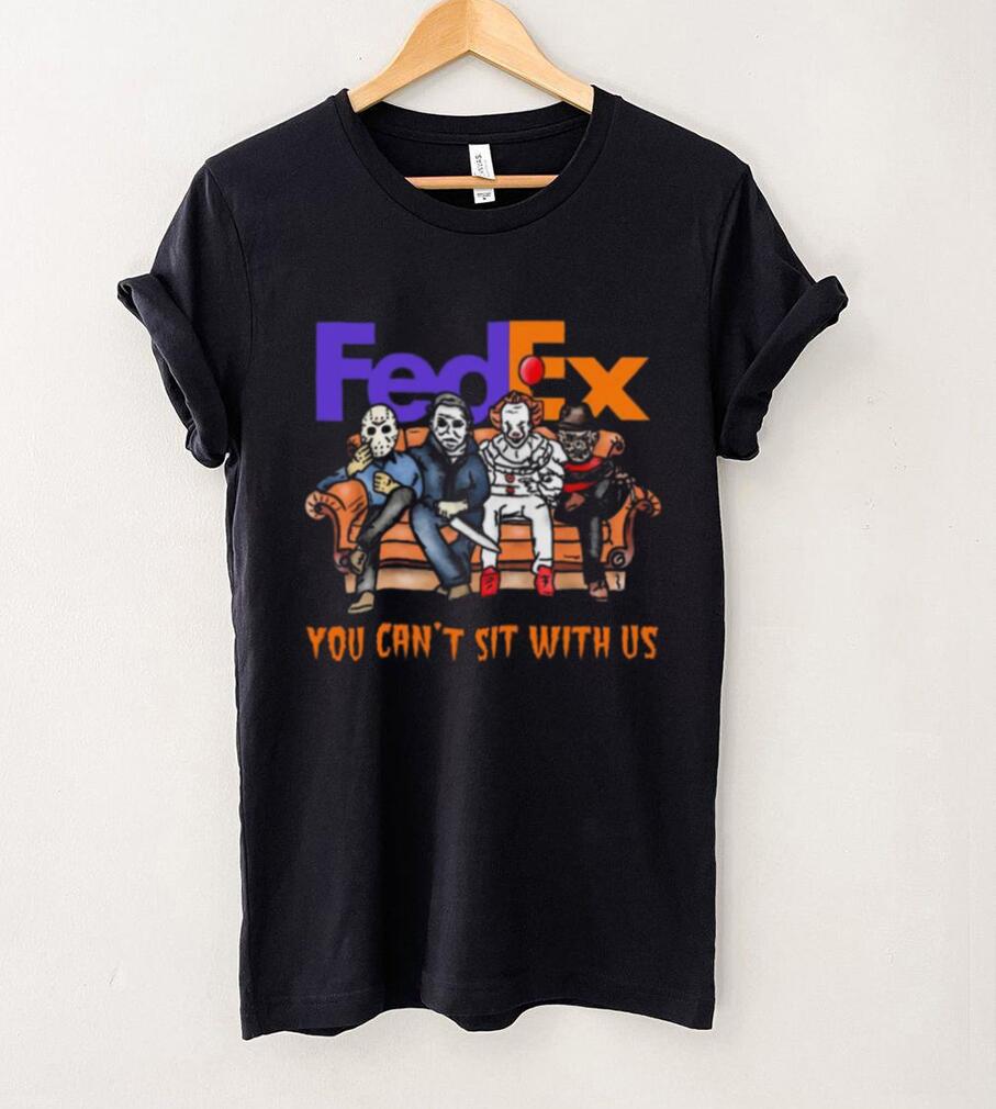 Everything that was in that movie is what my family did at Christmas. Mom and dad took my sisters, Lori and Tracy and I to see Santa so we could tell him what we wanted for Christmas. Yes the Horror Movie Characters FedEx You Can’t Sit With Us Halloween 2024 shirt were long and my older sisters, two years older than me, would be with me looking after me as we moved up the line toward Santa and just like in the movie, the closer we got, the scarier Santa was. “Don’t be scared RJ, Santa is nice okay, don’t be scared now, we’re here,” Tracy would say as we moved closer. Of course that didn’t help me, but I was okay when I got there. I never cried. Mom and dad also took us to the Santa Claus parade. They made sure Tracy went pee before the parade because dad didn’t want to take her somewhere to find a bathroom during the parade. Something that he would have had to do if she didn’t go. And she went a lot. We would walk and look into the department store windows and see the toys and moving elves that the kids saw in the movie. Like Ralphie, I would get mom to order things for me from the comics, neat little gadgets they advertised.