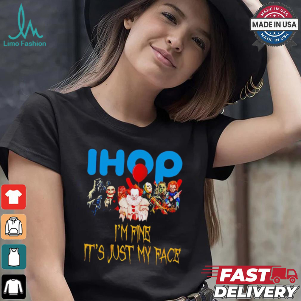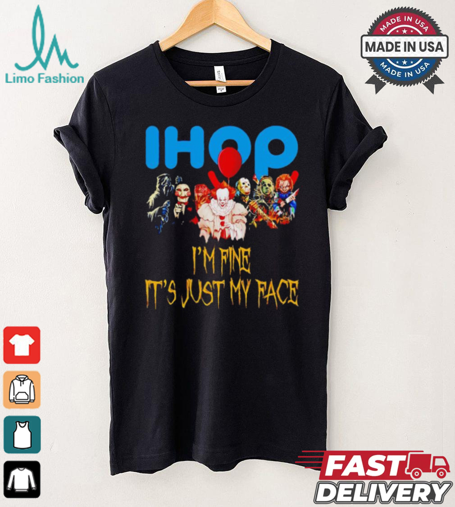 Horror movies Ihop I’m fine it’s just my face Halloween shirt