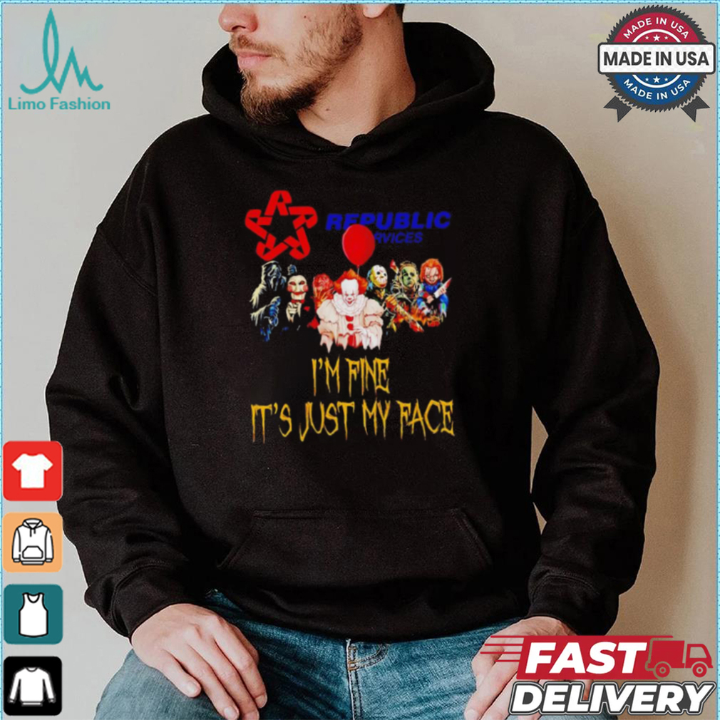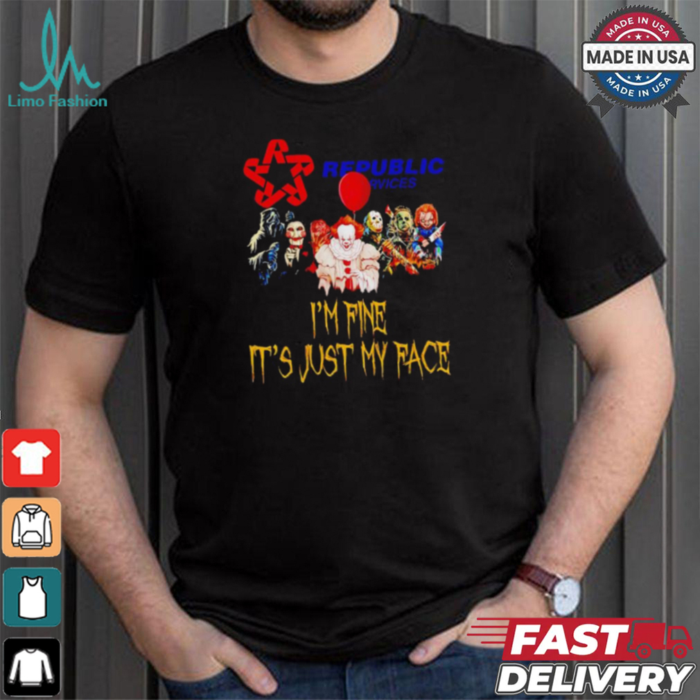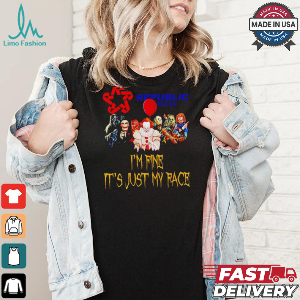 ()Horror movies Republic Services I’m fine it’s just my face Halloween shirt