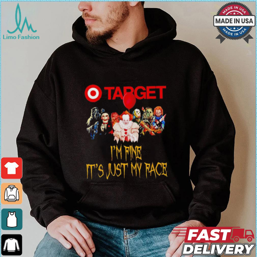 So, I’ve been working at this company for nearly a Horror movies Target I’m fine it’s just my face Halloween shirt from January. I needed a job as was being made redundant and this popped up so I took it, it’s a night shift but work is work. Now, after about three months, I was asked by my colleague if I could cover his shift as he had an evening event to go to which I said that’s fine I came to find out it was a company event where everyone is invited to it but me. I shrugged it off as I thought I’m new so I guess they had it booked for a while. Kinda still sucked having to cover someone’s shift though as they were having fun and I’m stuck in the office. Anyways, fast forward to about a month ago I was doing paperwork and I came across an email stating Christmas party, I brought it up with my colleague he said is there? To which I said yeah at this place he said oh yeah I know I’m going to that. I was struck as I had not been approached or invited to it, what makes it worse is as there has been a boom in work lately they have took on about 6 new people about 3 months ago and they have all been added to the guess list and they class each other now as “family” while I’m stuck covering the guys shift and I was told I need to have the on call phone over Christmas because he has a family?! Well so do I!!!