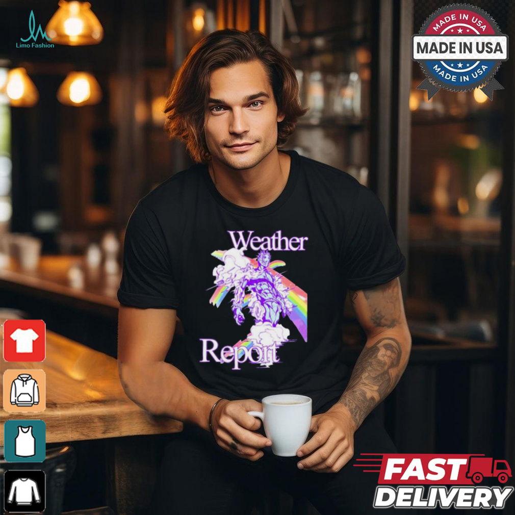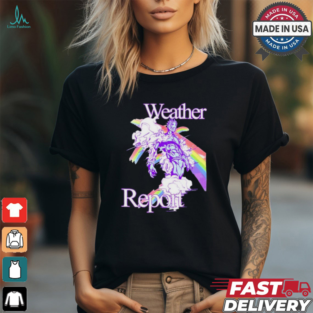And then she stood up, looked behind the Hoshipieces Weather Report Jojos Painting t shirt and noticed that what she had seen before was only displayed on a screen, and behind the screen, there was no real pond with fishes or a meadow with insects..nothing. From then on she never responded to that game again, from then on she would only eye it without interest.