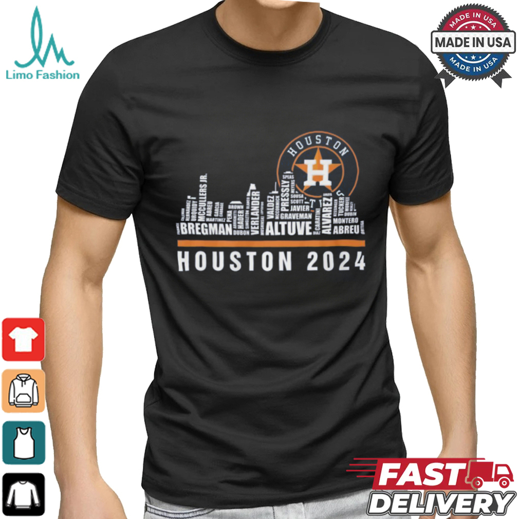 Houston 2024 Baseball Team Player Name City Skyline T Shirt