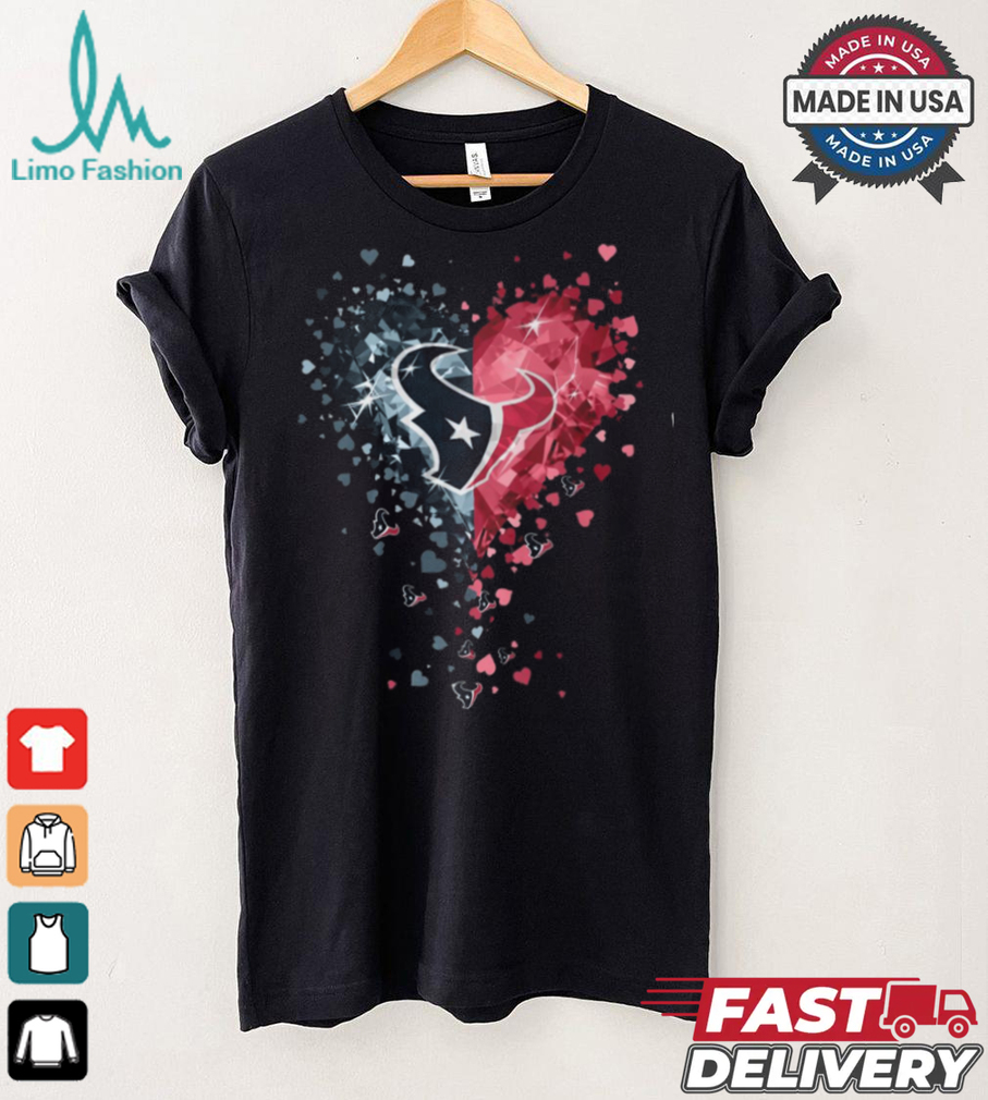 I do not remember Christmas Day itself that year, but the events around theHouston Texans Crystal Heart Shirt this holiday changed my life forever. I was living in Los Angles at the time and was dirt poor as I was very underemployed. I did not have any ambition, but was content. I had a new girl friend (we had been dating for not yet six weeks). I was too poor to buy a Christmas tree. It had been raining for about a week, and was expected to raining for the next week (for those of you that do not know the weather for Los Angeles, this was highly unusual). Three days before Christmas I was driving around with my girlfriend doing some last minute Christmas shopping, when an announcement came on the radio that they were giving away free Christmas trees at a location about one half mile from where we were. I looked at my girlfriend and she said, “Yes, let’s go get a Christmas tree” A couple left turns later, there we were. There was a truck with two trailers full of Christmas trees trying to give them away. The owner of the property where the truck was park had call the police and wanted them to be charged with trespassing. He had Christmas tree lot down the street and this was killing his business.