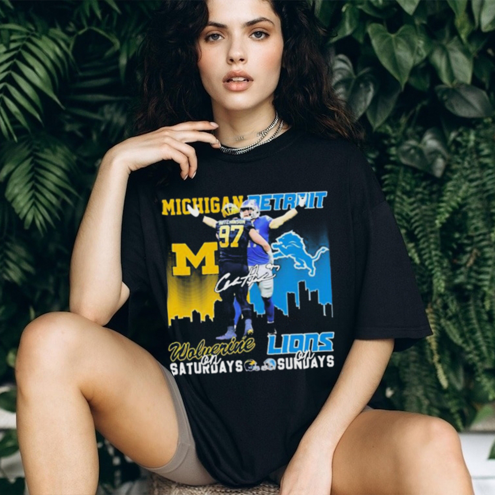 Hutchinson Michigan Wolverines On Saturdays Detroit Lions On Sundays Signatures Shirt0