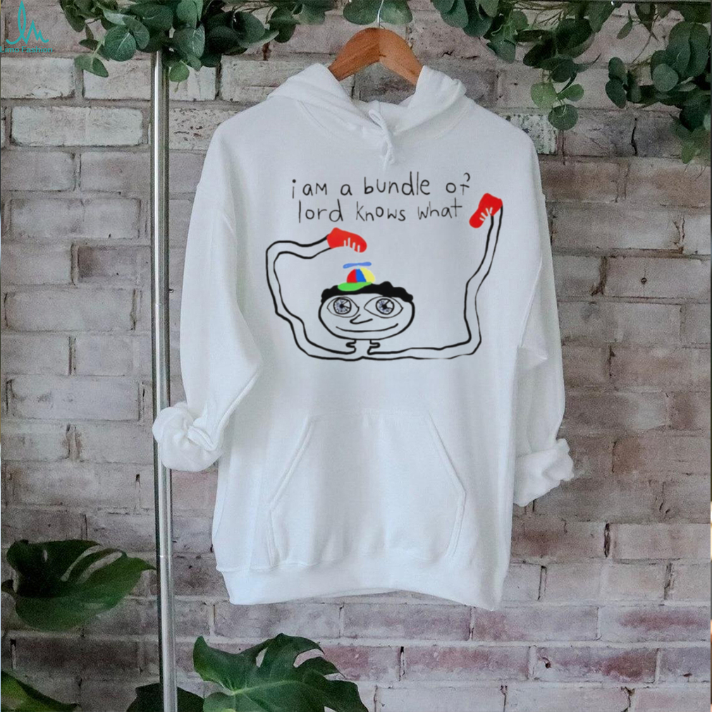 I sigh, and am just going to I am a bundle of lord knows what art shirt . Two cages are by each other. I reach in between the cages to pet a handsome adult cat in one of the cages. In the other cage are four kittens, tumbling about playing so hard it was hard to see what each one looked like. As my arm went between the cages, two little paws shot out and grabbed my wrist in a death grip. The three other kittens moved away and the fourth kitten was holding my arm, calmly looking at me with huge green eyes. The shelter staff girl came up and asked if I needed help.