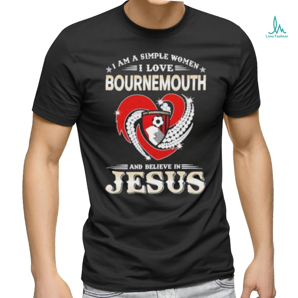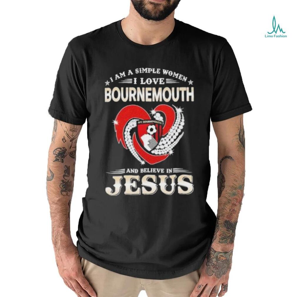 ()I Am A Simple Woman I Love Bournemouth And Believe In Jesus Shirt. Categories of this T-shirt is teejeep, I Am A Simple Woman I Love Bournemouth And Believe In Jesus Shirt from Dadyshirt ✓ Unique designs ✓ Large assortment ✓ Comfortable ✓ High-quality ✓ Easy to care for ✓ Available in a range of colours and styles for men, women ✓ Shop now ✓