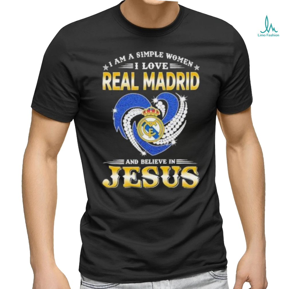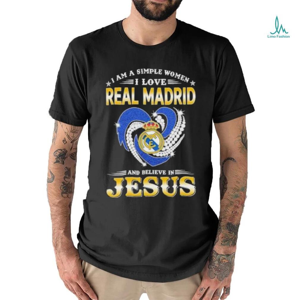 ()I Am A Simple Woman I Love Real Madrid And Believe In Jesus Shirt. Categories of this T-shirt is teejeep, I Am A Simple Woman I Love Real Madrid And Believe In Jesus Shirt from Dadyshirt ✓ Unique designs ✓ Large assortment ✓ Comfortable ✓ High-quality ✓ Easy to care for ✓ Available in a range of colours and styles for men, women ✓ Shop now ✓