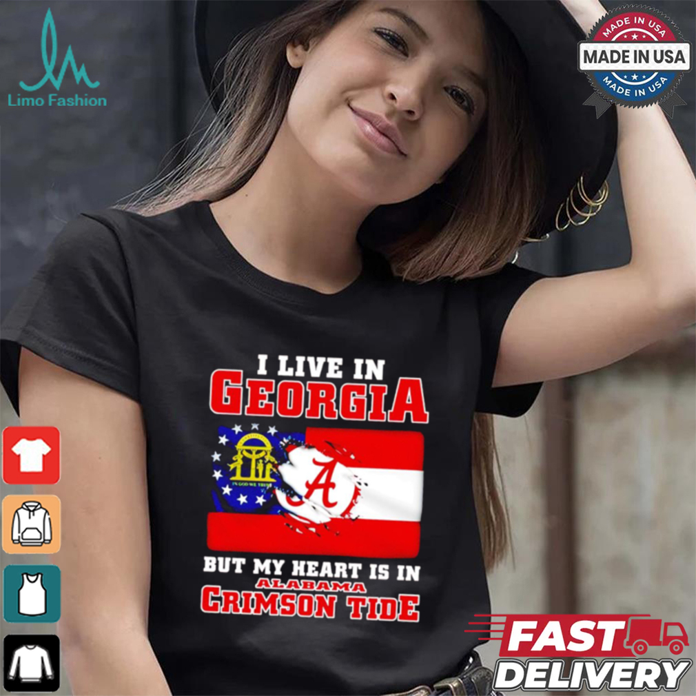 ()I live in Georgia but my heart is in Crimson Tide shirt