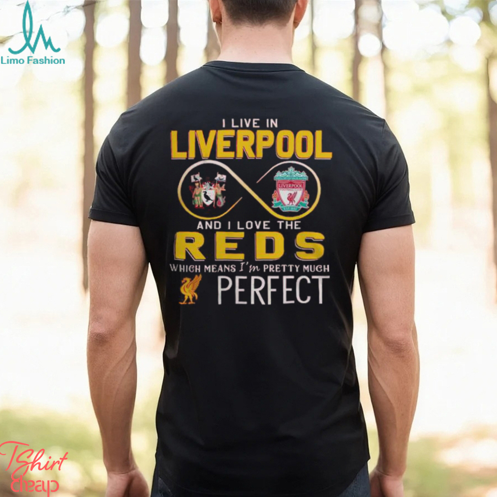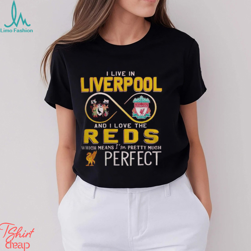 ()I Live In Liverpool And I Love The Reds Which Means I’m Pretty Much Perfect T Shirt hoodie, tank top, sweater and long sleeve t-shirt