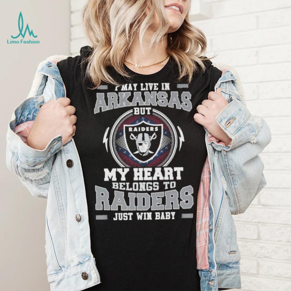 (I May Live In Arkansas But My Heart Belongs To Raiders Just Win Baby Hoodie Shirt, ladie tee)I May Live In Arkansas But My Heart Belongs To Raiders Just Win Baby Hoodie Shirt