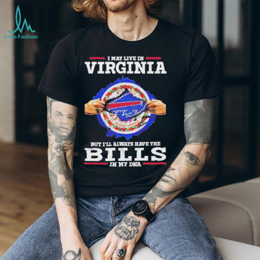 ()I may live in Virginia but I’ll always have the Buffalo Bills in my DNA Shirt. Categories of this T-shirt is teejeep, I may live in Virginia but I’ll always have the Buffalo Bills in my DNA Shirt from Dadyshirt ✓ Unique designs ✓ Large assortment ✓ Comfortable ✓ High-quality ✓ Easy to care for ✓ Available in a range of colours and styles for men, women ✓ Shop now ✓