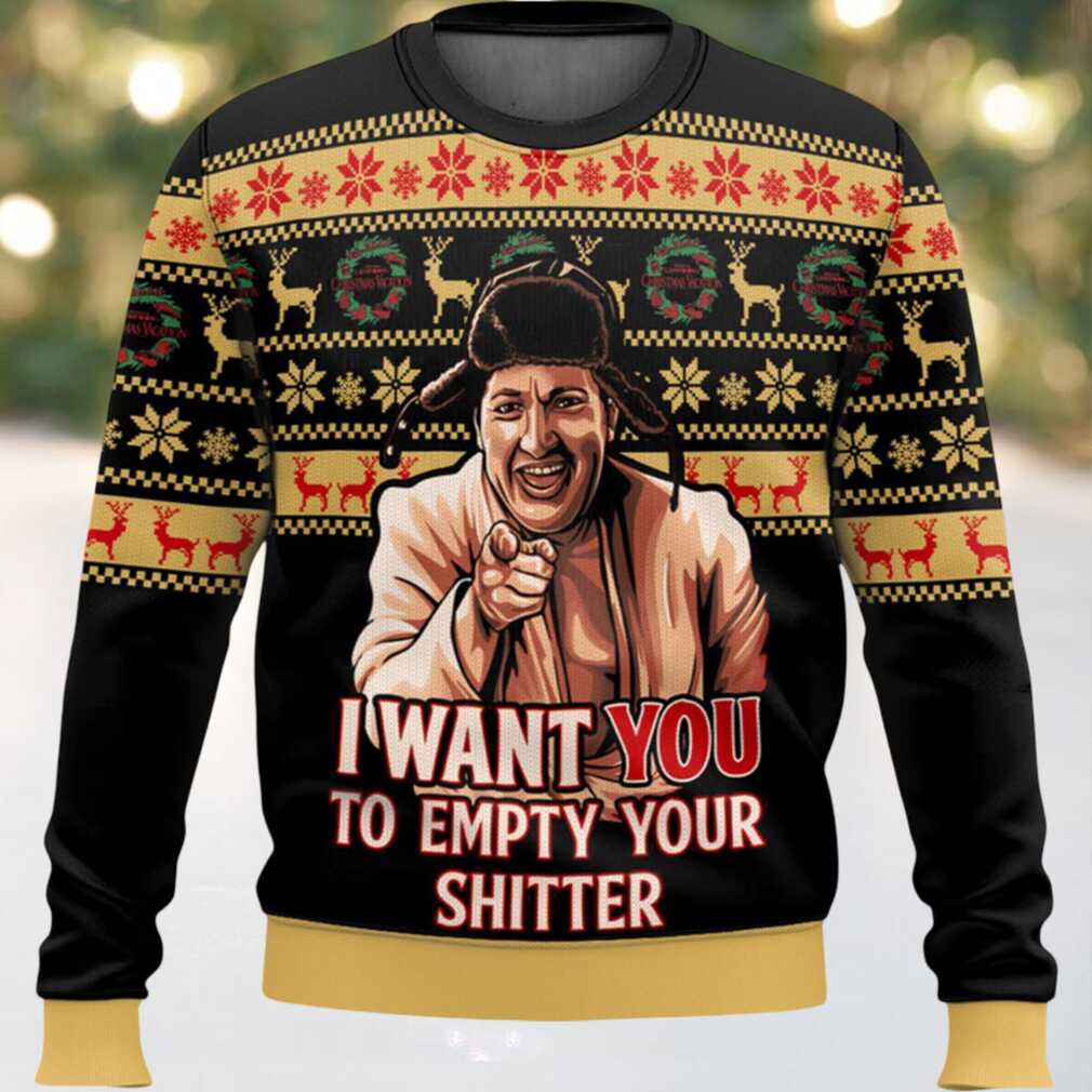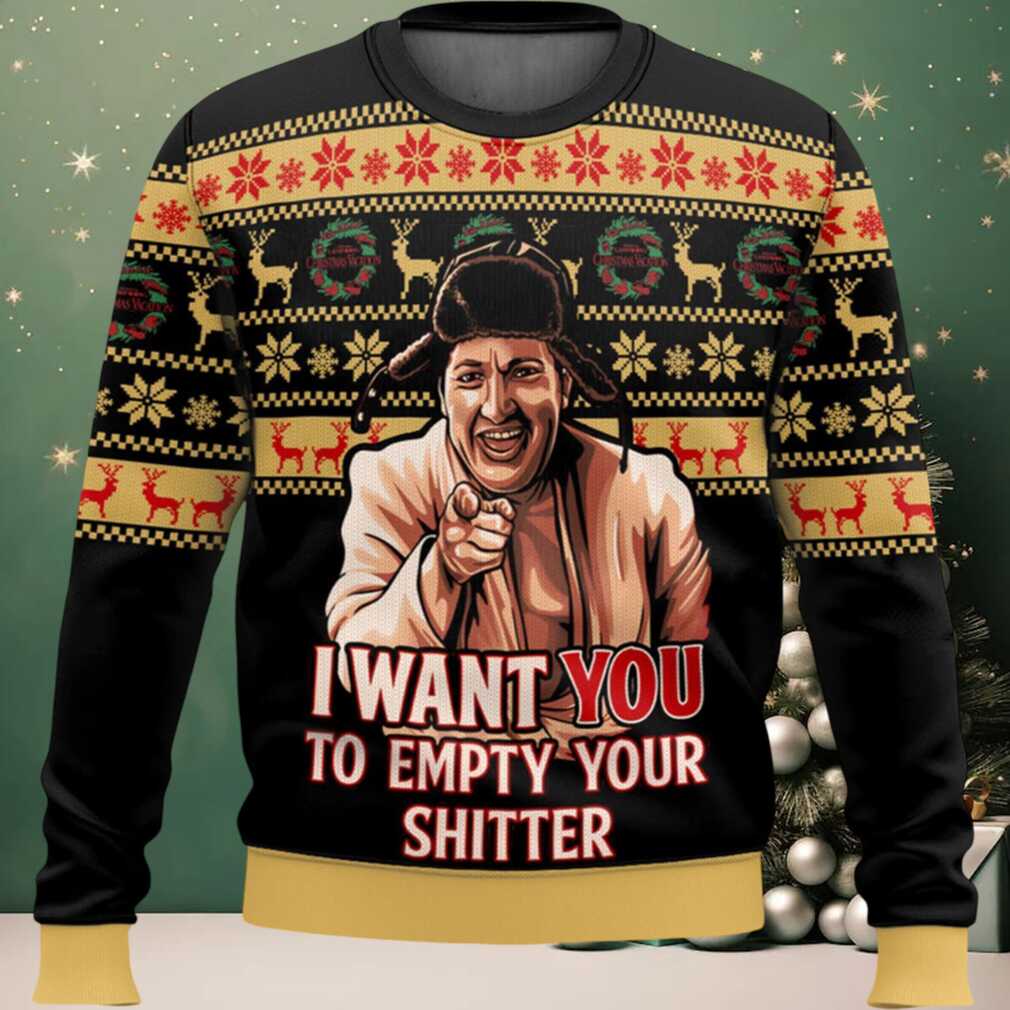 Looking to truly shock and offend this Christmas? Then look no further than the “I Want You To Empty Your Shitter Ugly Christmas Sweater.” This sweater is not for the easily offended, the faint of heart, or anyone who values family harmony. It is the ultimate statement piece for those who like their humor dark, their eggnog spiked, and their Christmas celebrations utterly unforgettable (for all the wrong reasons). Wear at your own risk!
