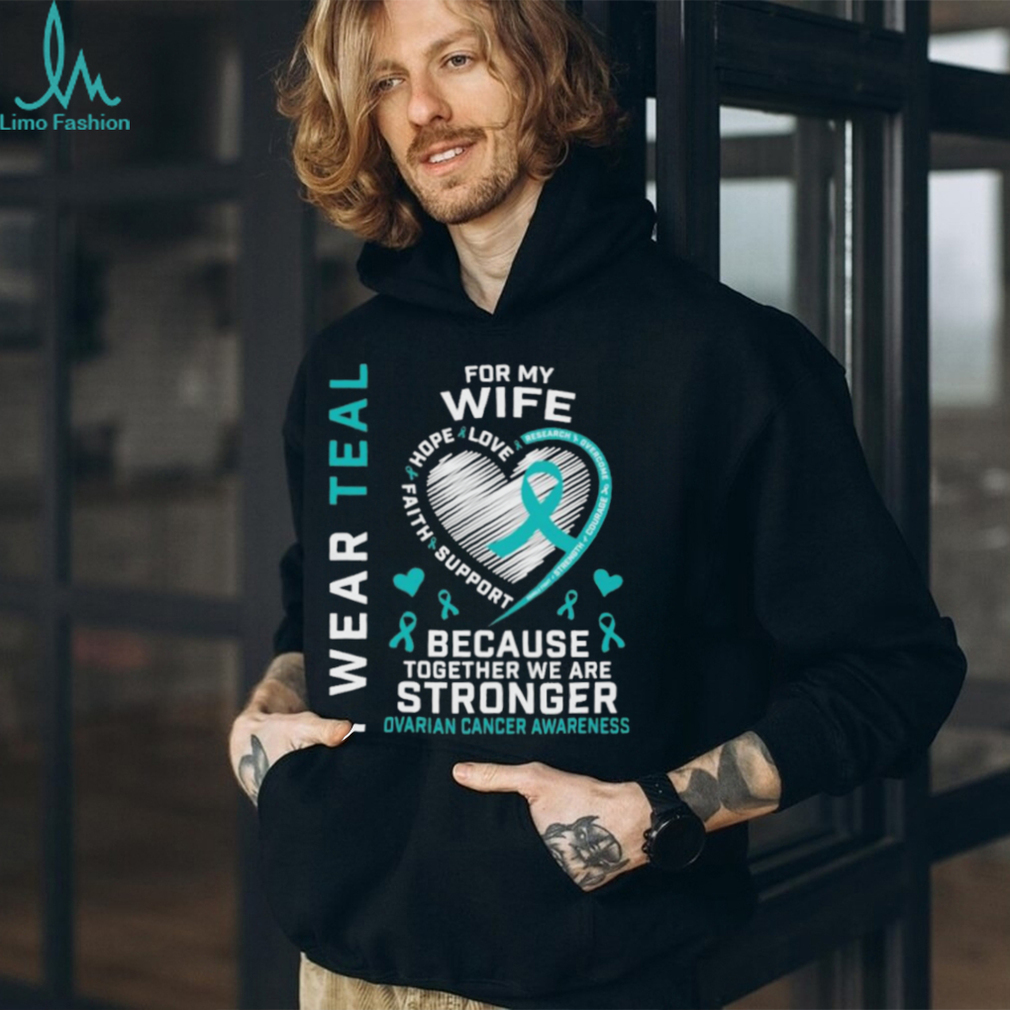 ()I wear teal for my love hope faith support because together we are stronger ovarian cancer awareness 2023 shirt, Hoodie, Sweater, Vneck, Unisex and T-shirt