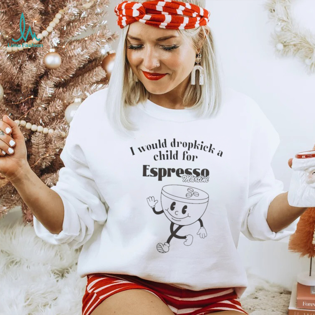 My grandfather was fond of I would dropkick a child for espresso martini shirt. When diabetes affected his legs and made him immobile, he continued to whistle. When glaucoma affected his eyes and he lost his eyesight, he continued to whistle. As someone in her early 20s, I found my granddad’s immense pleasure from life overwhelming and infectious. Here was a person who was losing all his senses, yet was gracious enough to utilize and maximize his happiness from the senses he still retained. Try whistling. It improves your lung capacity and will send more oxygen into your bloodstream, making you feel better instantly.Try cooking. I hear it is quite therapeutic when used to counter depression. Try duck meat (if you eat non-veg). If you have trouble sleeping, I read that tryptophan (an amino acid in duck meat) puts you to sleep instantly. Alternatives: try honey with milk before sleeping.