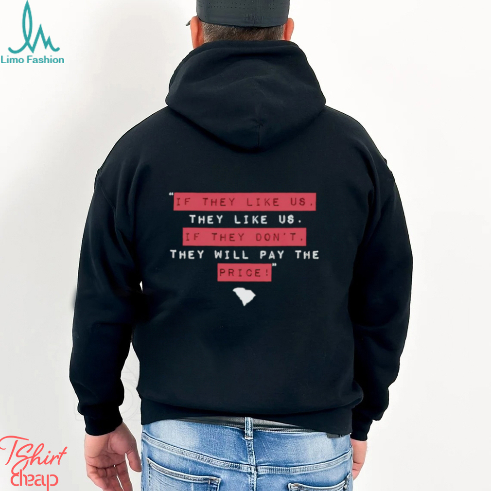 Many of the If they like us they like us if they don’t they will pay the price shirt Christmas customs were inherited from older Winter Solstice celebrations—including greenery indoors, feasting and gift-giving. It seems quite likely that the celebration of the birth of Jesus was scheduled at that time in order to piggy-back on existing holiday observances. Halloween is very directly descended from the old Celtic feast of Samhain, when the dead return to visit the living. Modern Pagans observe this and Beltane (May Day) as their major holidays, the Feast of the Dead and the Feast of the Living on opposite sides of the Wheel of the Year. Easter’s Pagan connections are suggested by its English name, Eostara being a Pagan Germanic Goddess associated with the Spring Equinox. The bunnies and eggs probably go back to Pagan times as well.