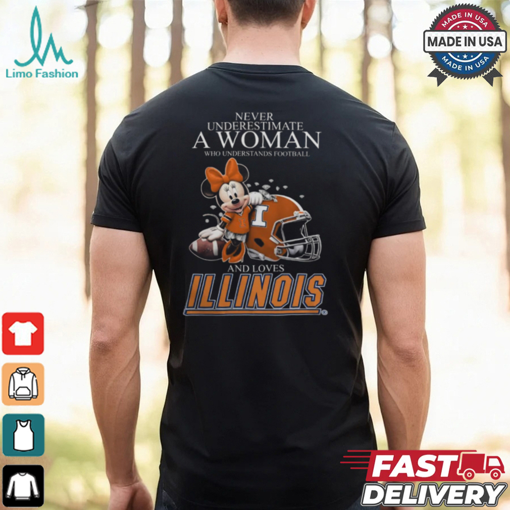 Illinois Fighting Illini x Minnie Mouse Never Underestimate A Woman Who Understands Football And Loves Shirt hoodie, tank top, sweater and long sleeve t-shirt