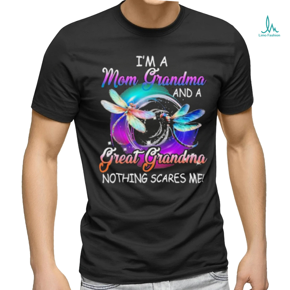 Best I’m a mom grandma great grandma nothing scares me dragonfly shirt