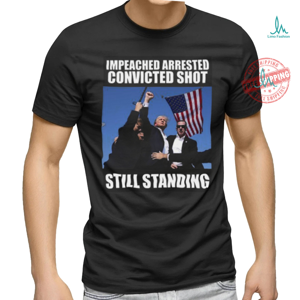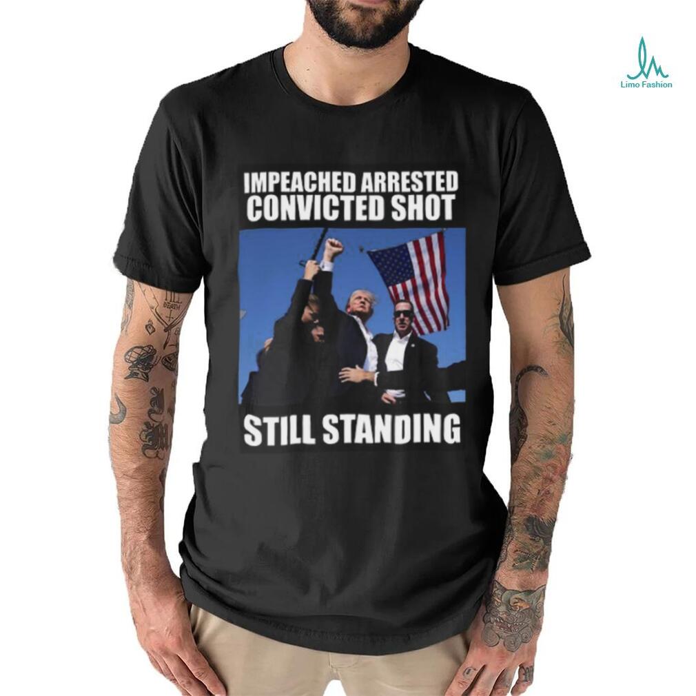 ()Impeached Arrested Convinced Shot Still Standing T Shirt. Categories of this T-shirt is teejeep, Impeached Arrested Convinced Shot Still Standing T Shirt from Dadyshirt ✓ Unique designs ✓ Large assortment ✓ Comfortable ✓ High-quality ✓ Easy to care for ✓ Available in a range of colours and styles for men, women ✓ Shop now ✓