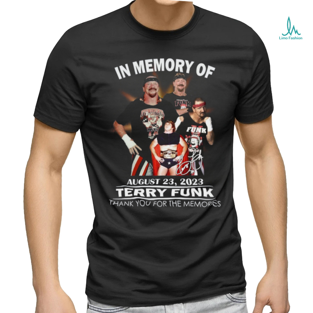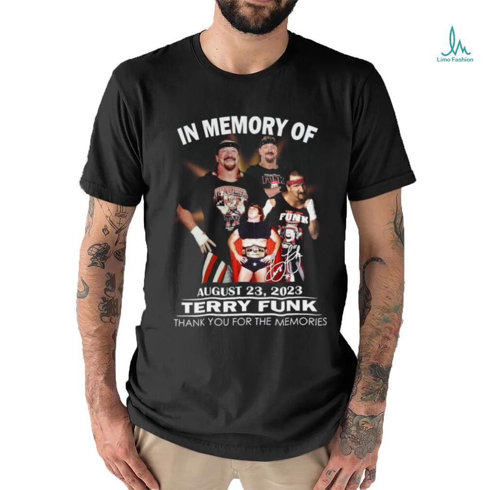 ()In Memory Of August 23, 2023 Terry Funk Thank You For The Memories Unisex T Shirt. Categories of this T-shirt is teejeep, In Memory Of August 23, 2023 Terry Funk Thank You For The Memories Unisex T Shirt from Dadyshirt ✓ Unique designs ✓ Large assortment ✓ Comfortable ✓ High-quality ✓ Easy to care for ✓ Available in a range of colours and styles for men, women ✓ Shop now ✓