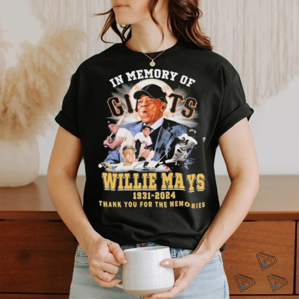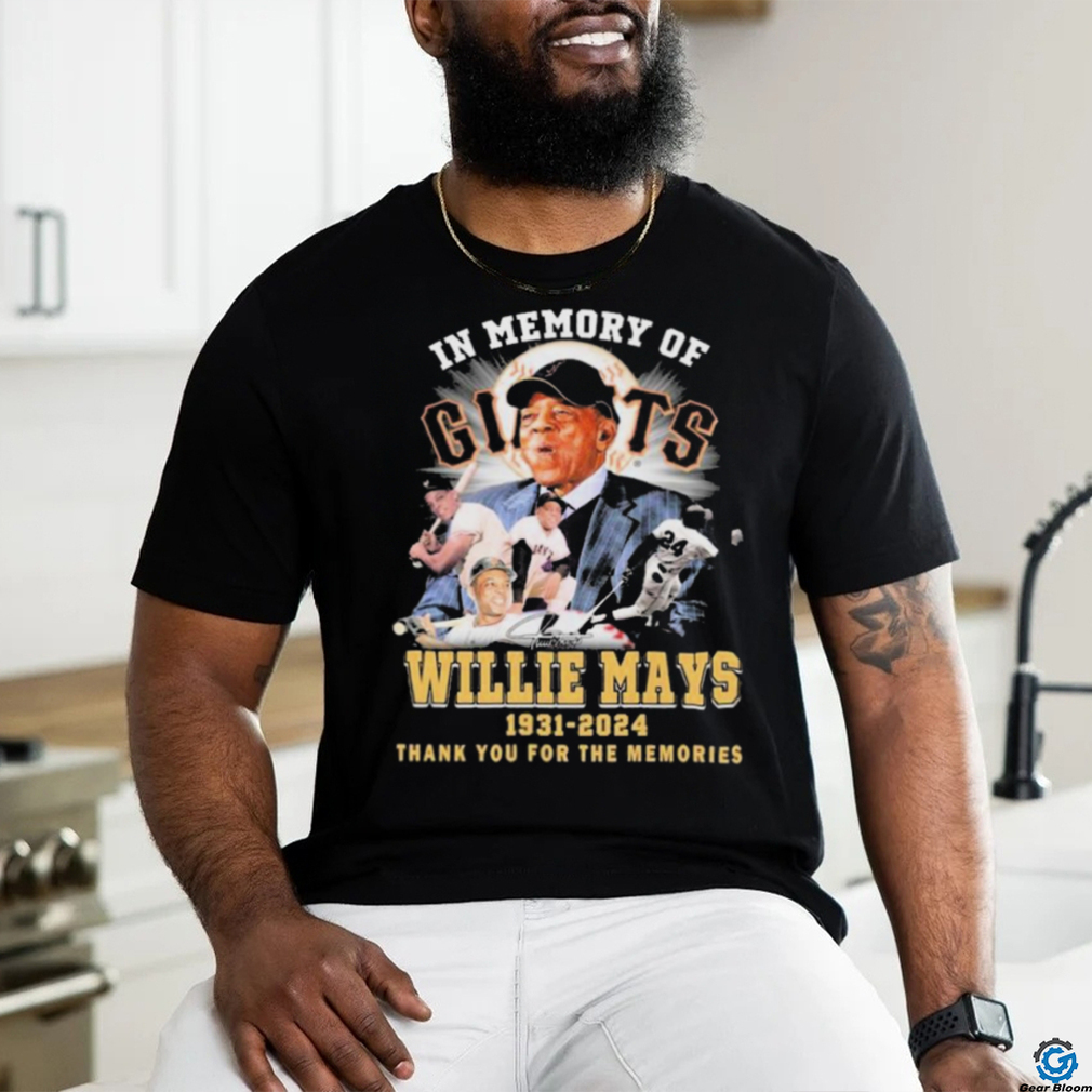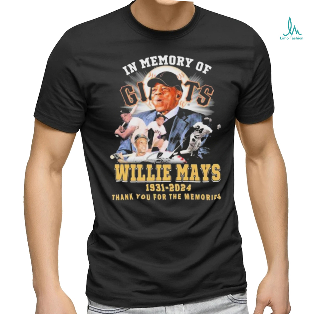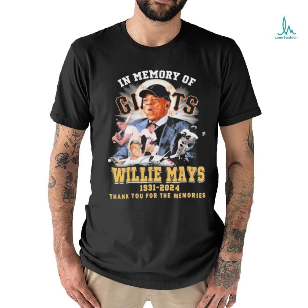 In Memory Of San Francisco Giants Willie Mays 1931 2024 thank you for the memories signatures shirt