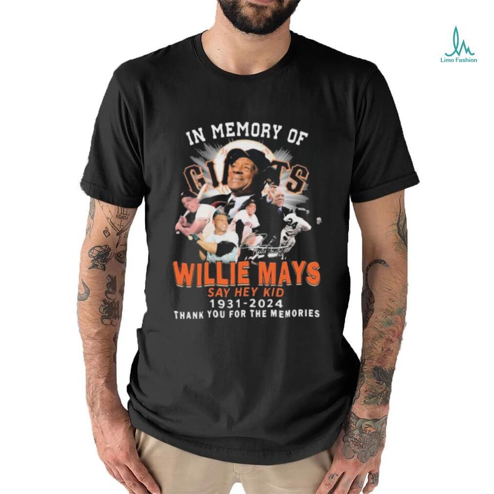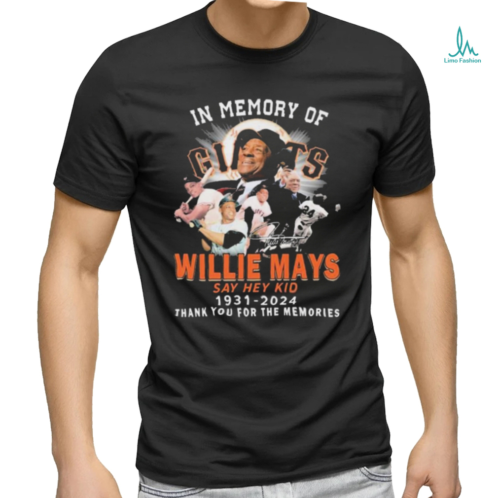()In Memory Of Willie Mays Say Hey Kid 1931 2024 thank you for the memories signature shirt, Hoodie, Sweater, Vneck, Unisex and T-shirt