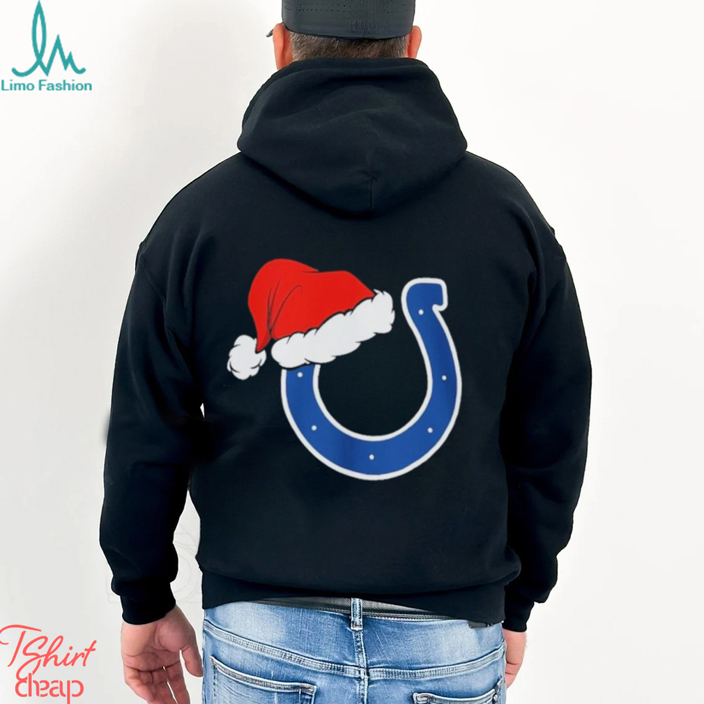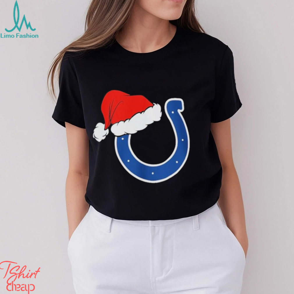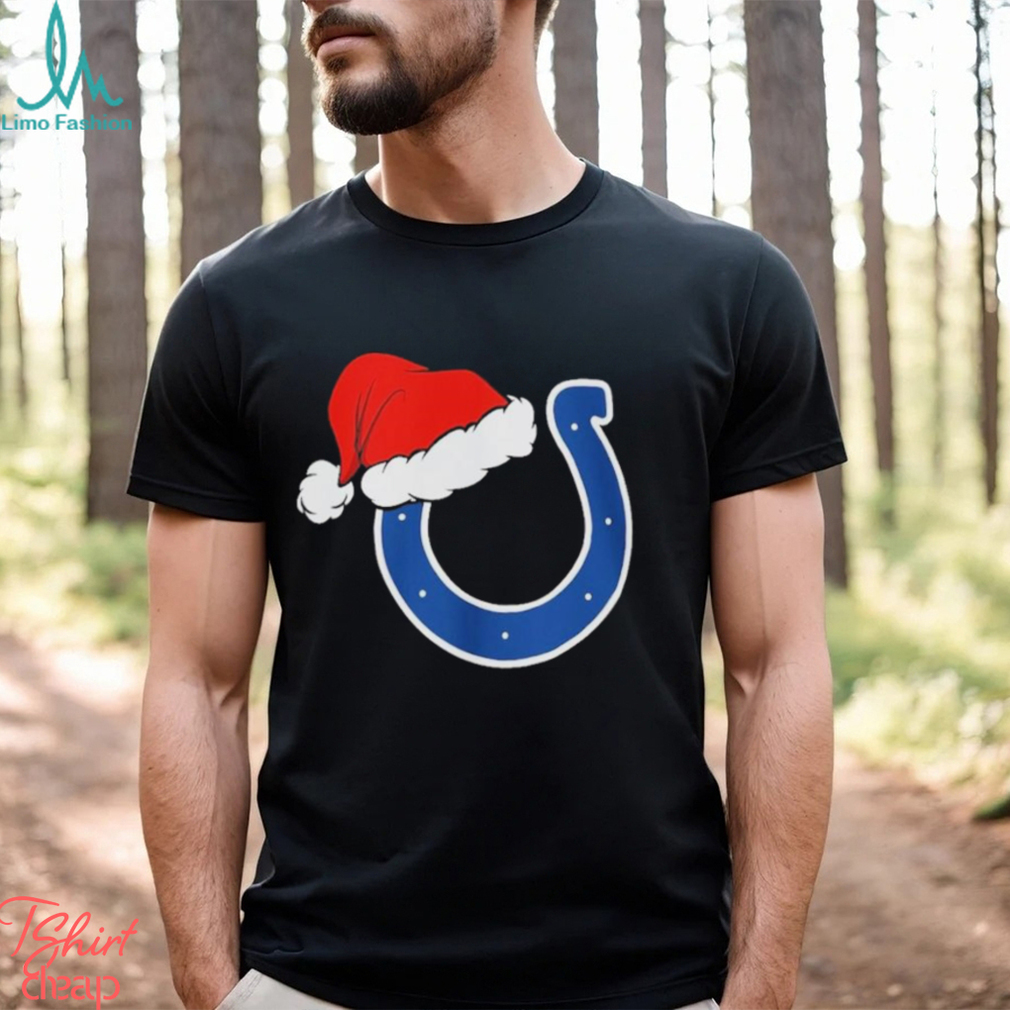 The Northern Protestant German tradition is supposed to come from a Indianapolis Colts logo Santa Hat Christmas 2023 Shirt in 1536. Of course the tradition is really pre-Christian. Yule trees were dedicated to Odin at solstice and decorated with fruit and candles. But the story goes that Luther was walking through a pine forest near his home in Wittenberg when he suddenly looked up and saw thousands of stars glinting jewel-like among the branches of the trees. This wondrous sight inspired him to set up a candle-lit fir tree in his house that Christmas to remind his children of the starry heavens from whence their Saviour came. It really started spreading in popularity in the late 1700s with the rise of German Romanticism and German Nationalism. upper middle class Protestant families in Prussia wanted to express what the thought of as folk and country traditions. The early descriptions of German trees in the 1600s do not mention stars or angels. They say that people in Strasbourg “set up fir trees in the parlors … and hang thereon roses cut out of many-colored paper, apples, wafers, gold-foil, sweets, etc.