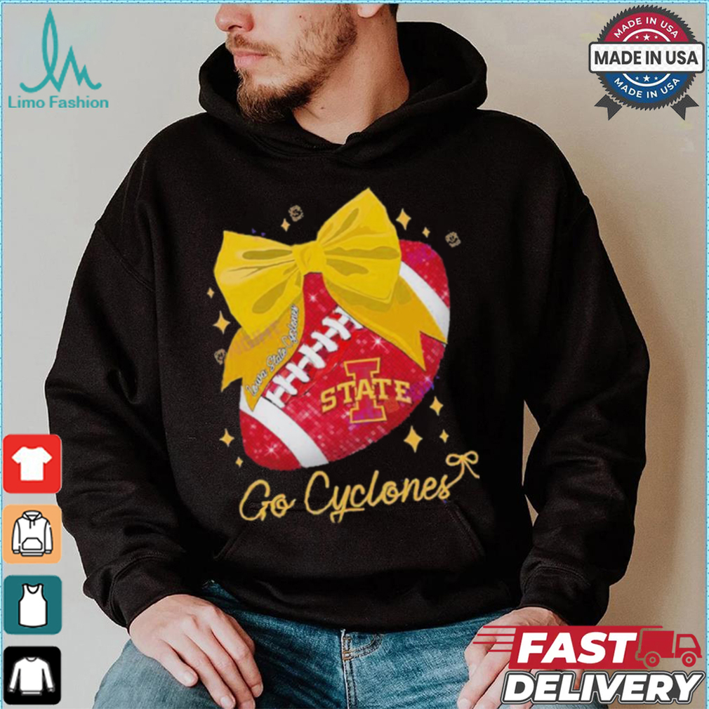 Everyone was now in good mood, including the Iowa State Cyclones Go Cyclones Football Shirt . We had a grand time giving away tress. And we gave away thousands of trees. My girlfriend and I had just spent the last three days in a heavy rain, giving away free Christmas trees. Everyone made the best of a rainy situation. This put us both in a very good mood. I do not have any memories of Christmas day; however, two days later I asked my girlfriend if she would marry me. We had been dating all of six weeks. She said yes. We now have been married for over 45 years and often think about the “Great Christmas Tree Caper” around the holiday.