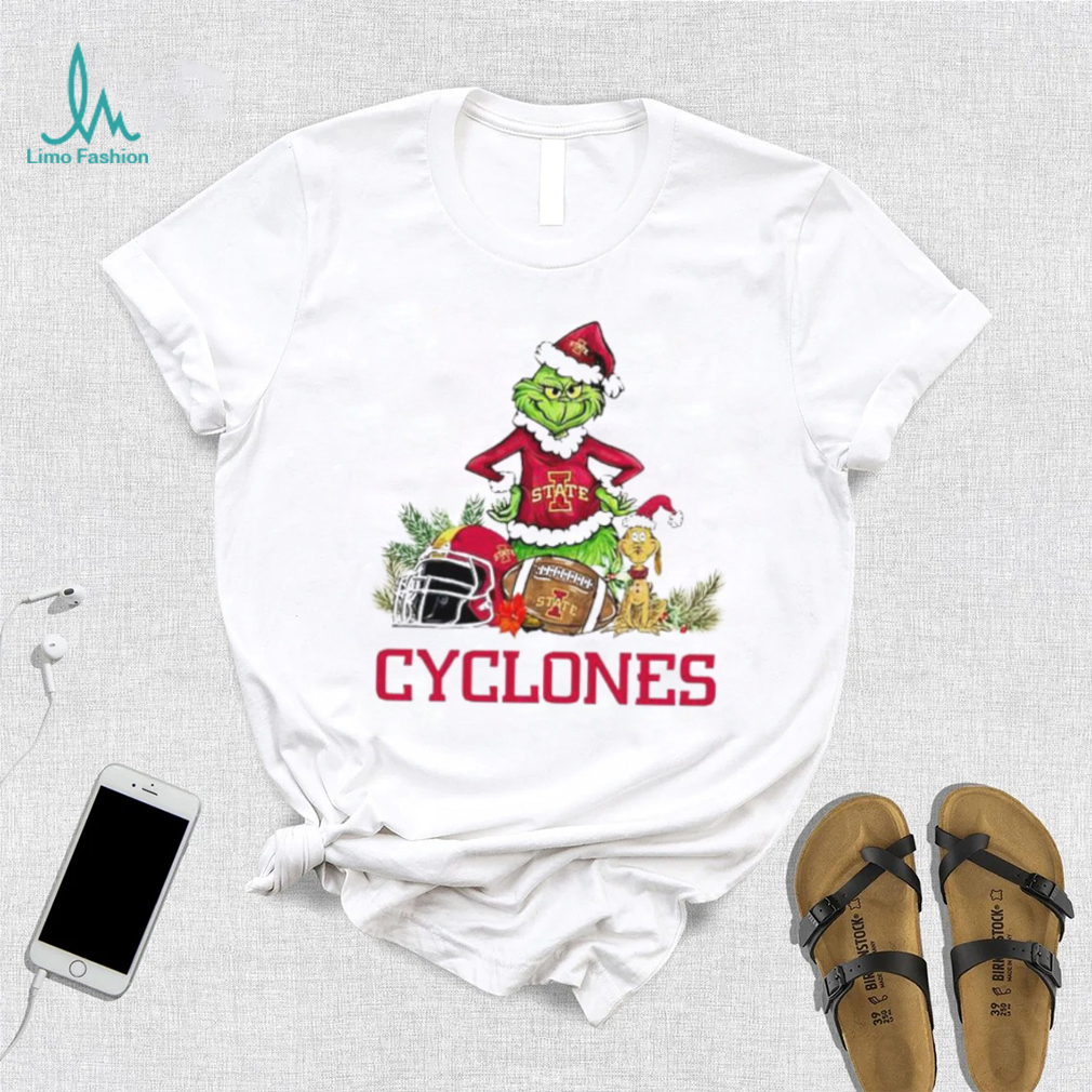 ()The level of specialisation in NFL would be a challenge. Each side has unlimited substitutions and has a complete offense and defense team plus special teams for kick plays. For many NFL players, there is no requirement to be able to pass, only catch — and the ball is quite a different shape. For others, there is little requirement to touch the ball at all. All of the players on a Iowa State Cyclones Grinch and Max dog funny Christmas shirt team need to be able to pass and catch. Kickers are specialised roles in NFL, whilst in Rugby, 3 of the positions require excellent kicking (scrum half, fly half, full back) and in the other ‘backs’ positions (inside and outside centres and two wingers), most teams have at least 2 additional accomplished at kicking from hand in open play.