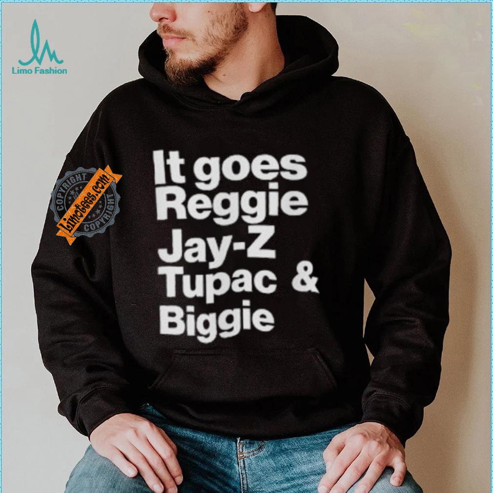 The It Goes Reggie Jay Z Tupac And Biggie Shirt Eminem Lyric Shirt Rap God Shirt Rap God T Shirt Hip Hop Tee Eminem Shirt to answering your question is experience. We exist to experience; we know we exist because we experience our own existence. The second key is observation. We observe our existence, our experience. We witness, record, and reflect upon our experience. The third key is intention. From observations of our experiences, we build a theory of “reality”, and make choices to act or not act based on that theory. We form an intention to create a specific experience that we want to observe. Now we have a sufficient solution to the problem. Experience, observation, and intention together create reality. They cannot exist without each other. None is more fundamental than the other, and none can be removed without destroying the others. Experience, observation, and intention: the grand experiment. We exist to try things, experience them, and observe the result. There is no meaning beyond that; when we are gone, all those things are gone too. We should use the little time we have to make as many experiments as possible. We have been blessed with the opportunity to experience, observe, and intend, and we should not waste it.