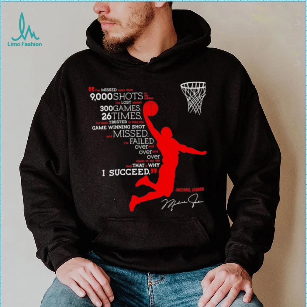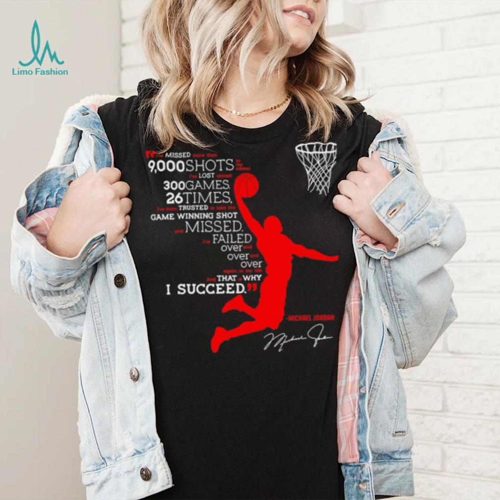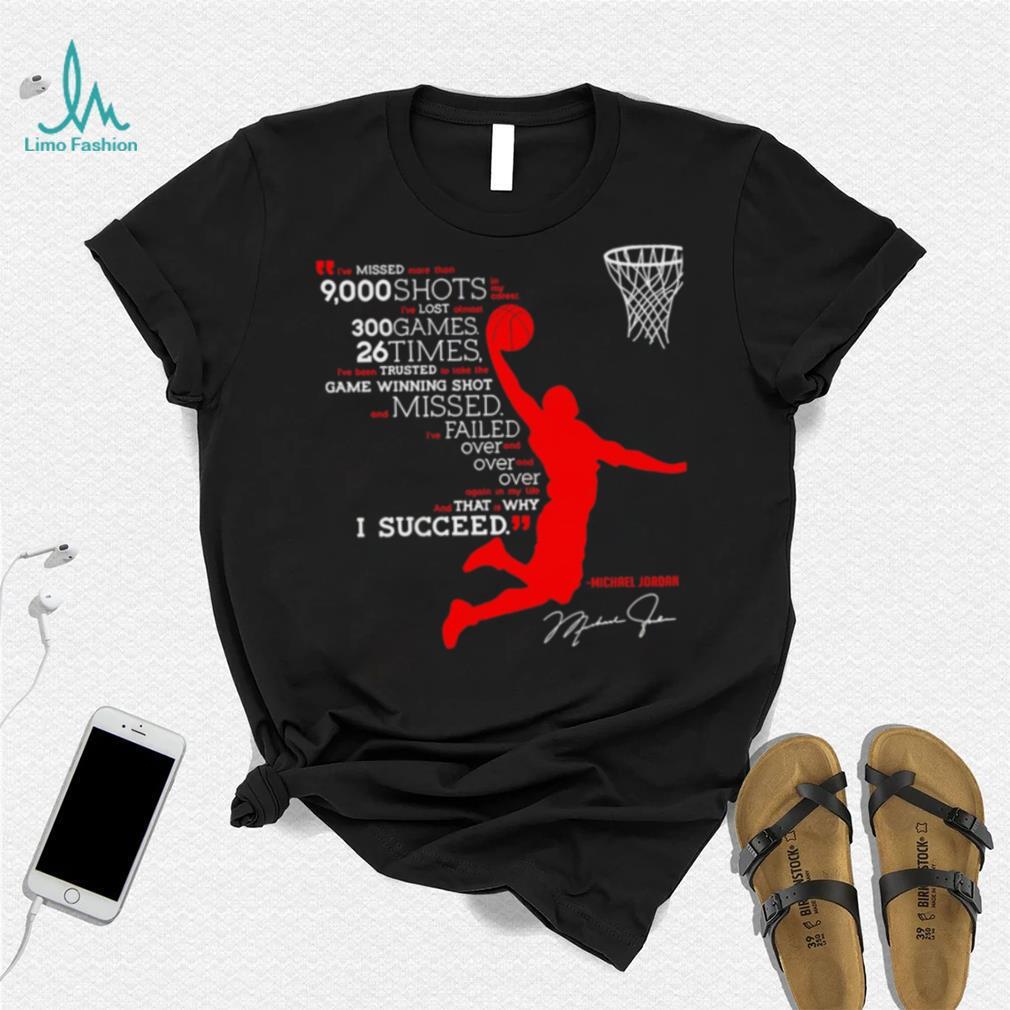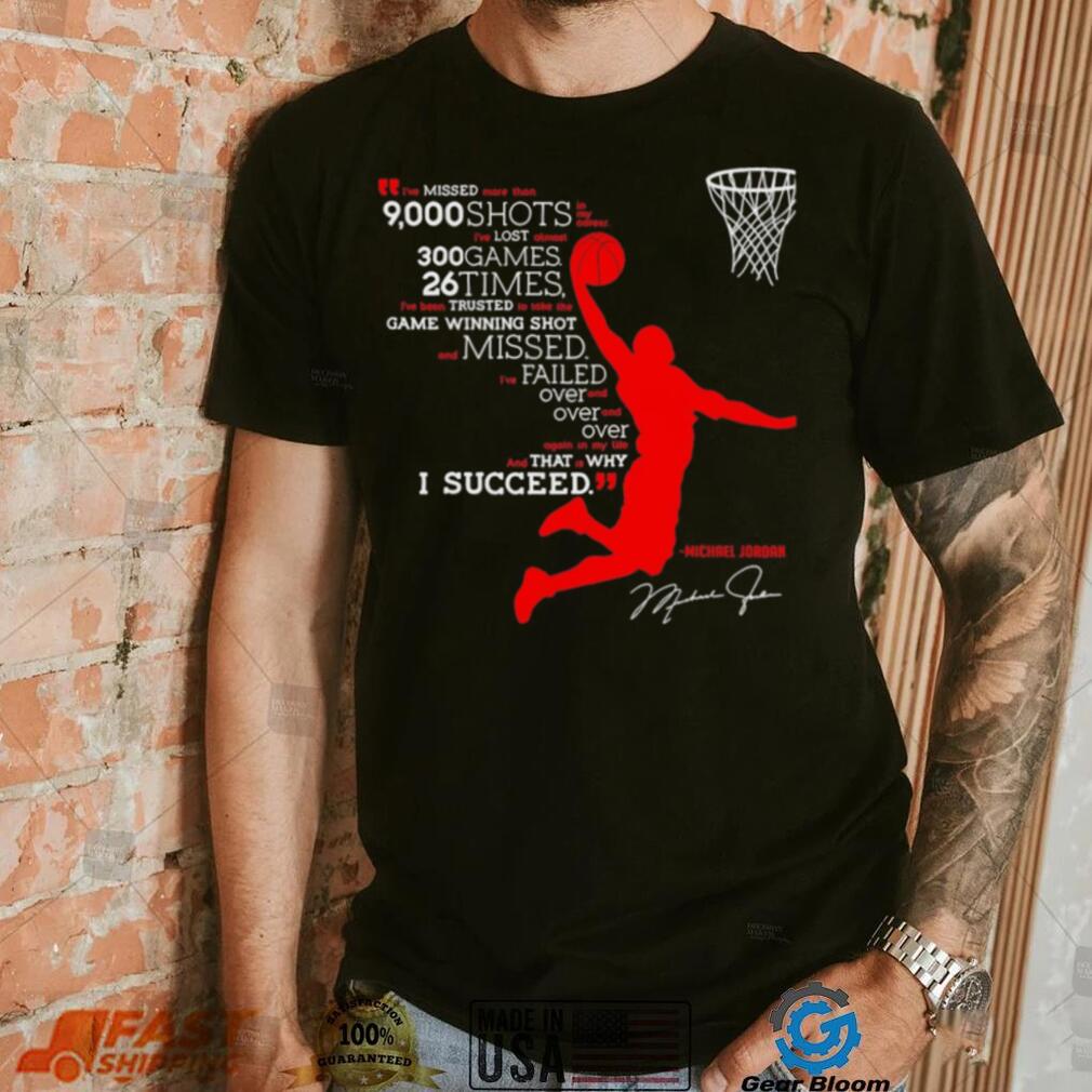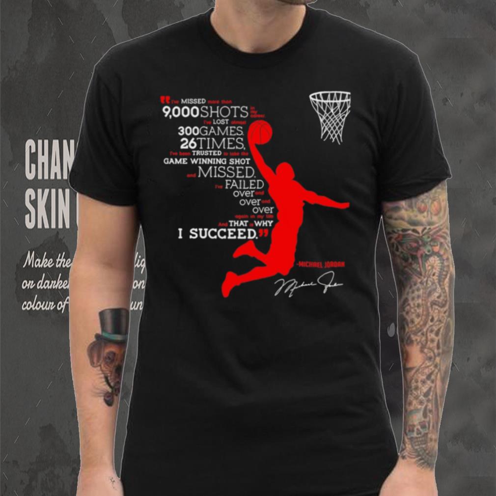 ()I’ve missed more than 9000 shots in my career i’ve lost almost 300 games 26 times Michael Jordan signature shirt