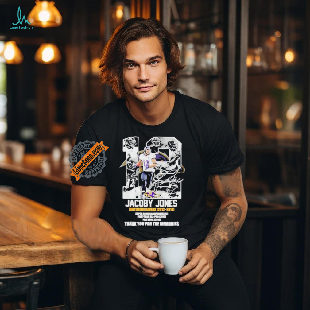 He used his magical ways to bring Jacoby Jones Baltimore Ravens 2012 2024 Thank You For The Memories #12 shirt self proclaimed “cat haters” around to love him and his kind. He would creep up behind them stealth like on the couch back for example and lick their hair. Often for minutes before they even realized he was there and by then, he had already given them a new do. Cat do. He was also a fabulous hair stylist. But if someone was a cat hater it was as if he knew it and insisted they reevaluate that by showing them affection and demanded their attention in until they gave in. They always ended up given in to him.
