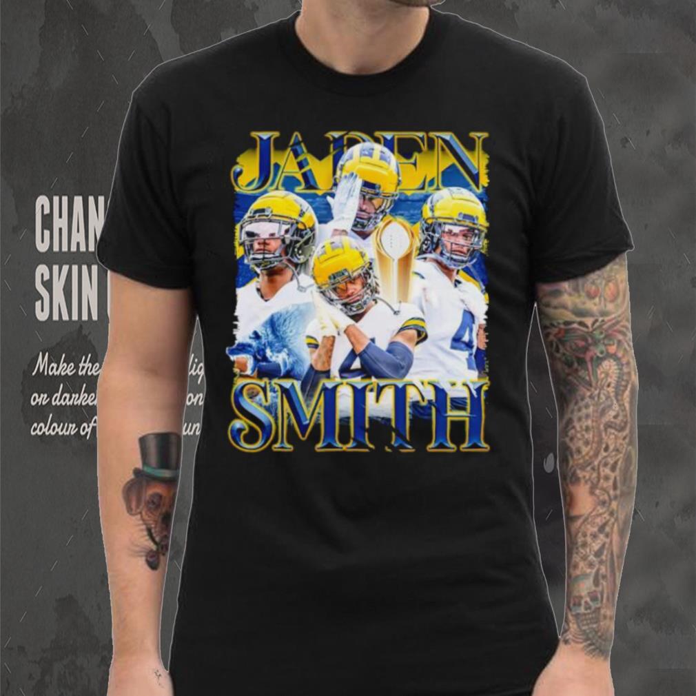 So not only did they actually have their homes both have Hanukkah and Christmas decorations, but these very different families they happily and joyously hosted celebrations for Jaden Smith Michigan Wolverines vintage shirt. What’s key here though is that what is meant by “Christmas.” Many people associate this holiday as a traditional Christian-themed, religious holiday with various Christian themes, decor, etc.. But many other people associate the holiday with snowmen, winter weather, reindeer, hot chocolate, egg nog (often with rum), various evergreen trees (artificial or real) festooned with glittering ornaments, pretty gift boxes under the tree, etc., or a secular (with Pagan roots in Saturnalia) winter holiday just a few days after the annual winter solstice. In fact, it seems to be a holiday that many non-Christians and even non-theists celebrate.