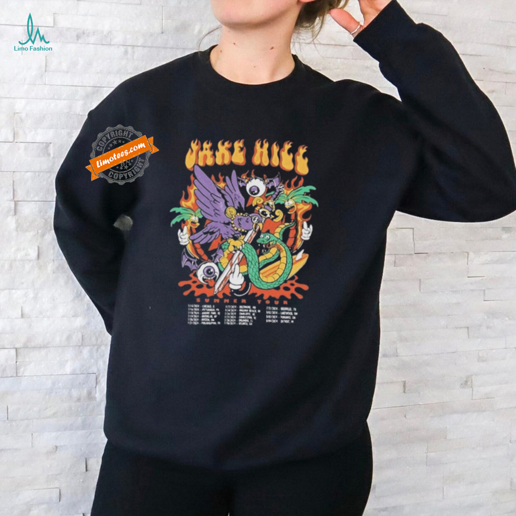 My cat, Tealc, is Jake Hill Summer Tour 24 Shirt now for three years was so attached to me it was eerie. I was going through a stressful time years ago and it had started to affect my sleep. On several occasions I would wake up gasping for air and full of anxiety. My wife would wake me up out of a dead sleep sometimes and tell me I had stopped breathing. One night while I slept in had apparently done just that. Most of this I learned from my wife who witnessed it since I was asleep.