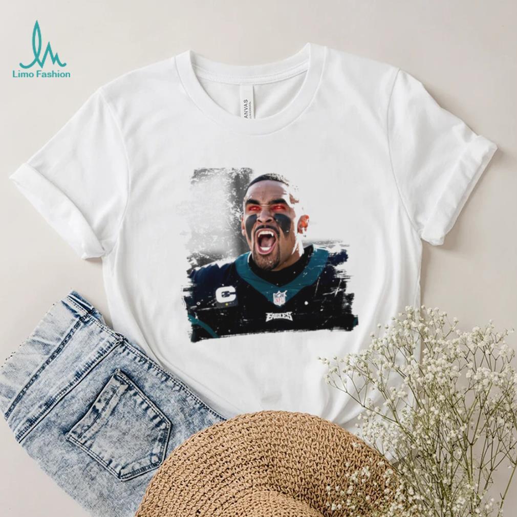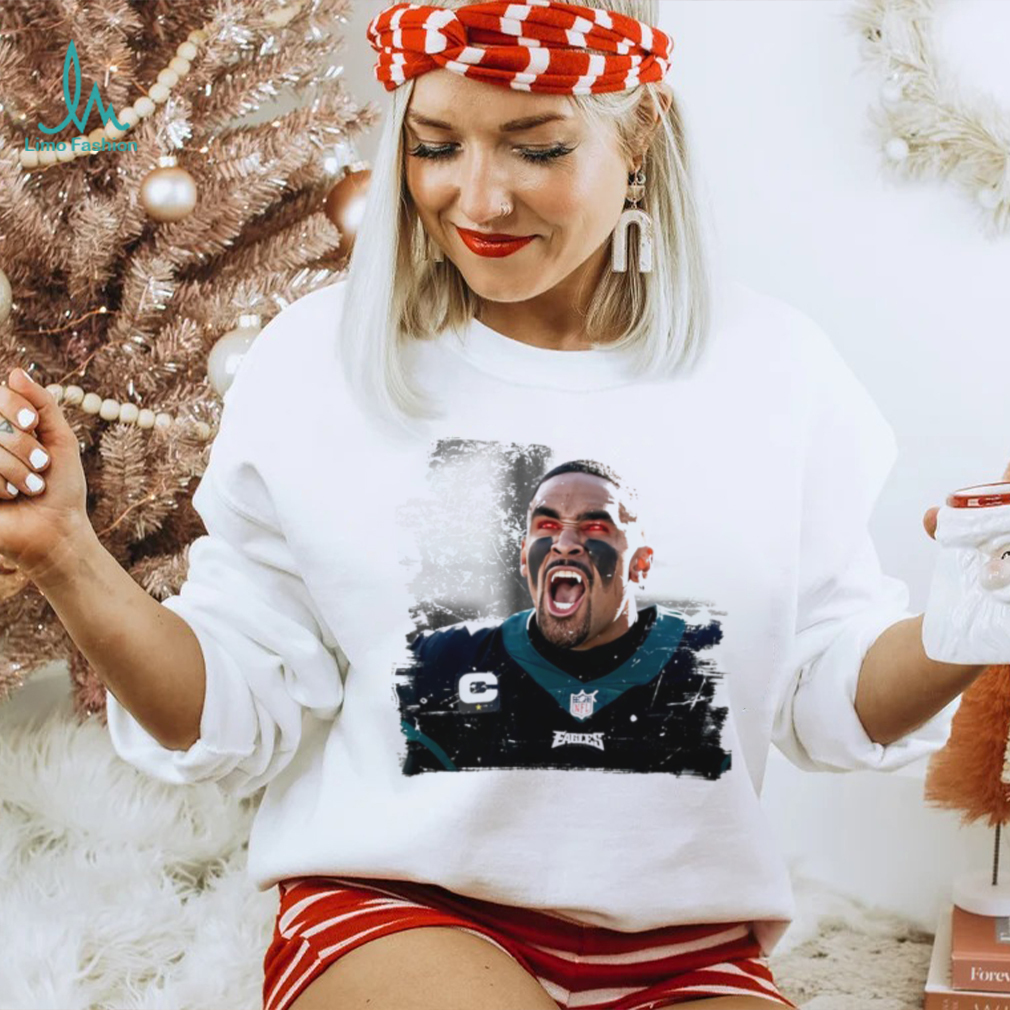 Everyone was now in good mood, including the Jalen Hurts unleashed fangs out funny shirt . We had a grand time giving away tress. And we gave away thousands of trees. My girlfriend and I had just spent the last three days in a heavy rain, giving away free Christmas trees. Everyone made the best of a rainy situation. This put us both in a very good mood. I do not have any memories of Christmas day; however, two days later I asked my girlfriend if she would marry me. We had been dating all of six weeks. She said yes. We now have been married for over 45 years and often think about the “Great Christmas Tree Caper” around the holiday.