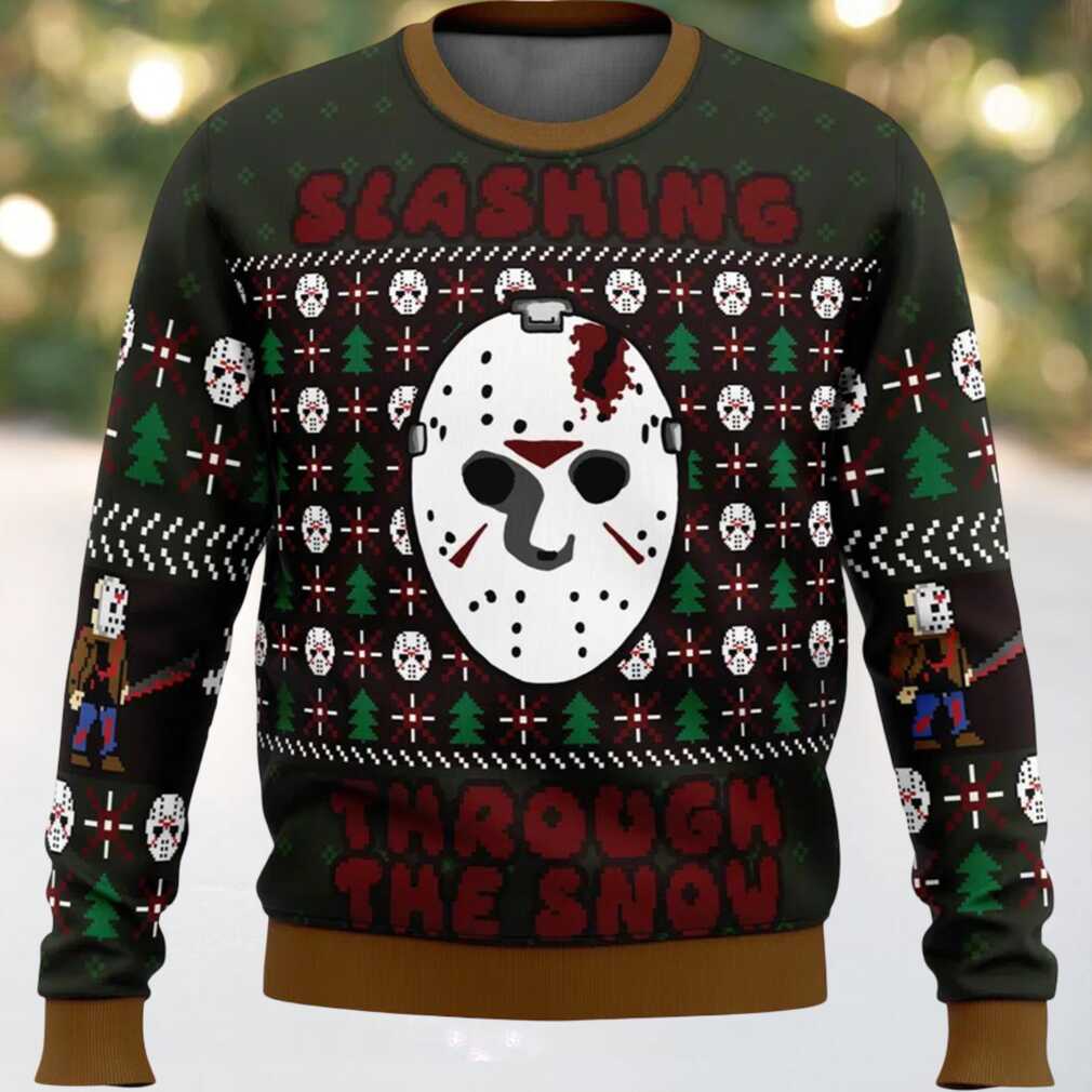 Jason Voorhees Slashing Through The Snow Ugly Christmas Sweater
